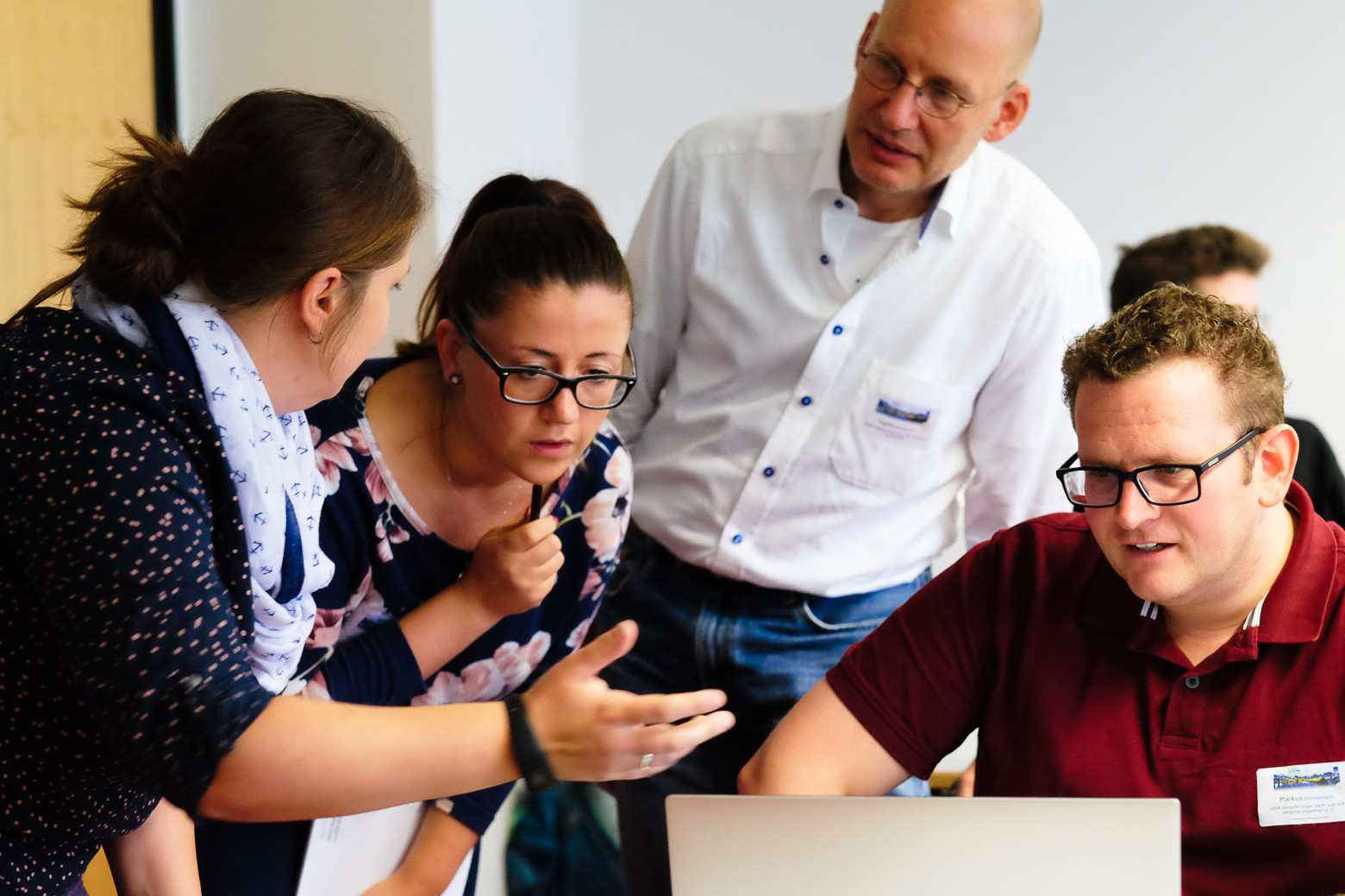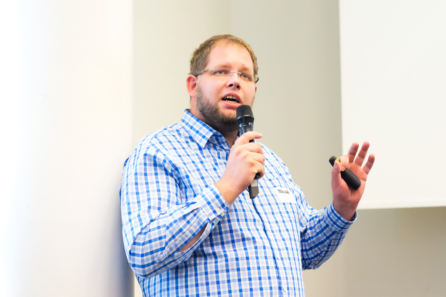 Auf die Keynote folgten die Eröffnungsvorträge der Gastgeber. Marco Sommer und Stephan Winiker stellten die Einsatzszenarien von ILIAS an der Hochschule Luzern vor. Aufgrund eines veränderten Release-Zyklus konnten ILIAS-Vereinsgeschäftsführer Matthias Kunkel und Technical-Board-Mitglied Alexander Killing in diesem Jahr erstmals keine Live-Demo der kommenden ILIAS-Version zeigen. Stattdessen mussten sie sich mit Mock-Ups begnügen, um die kommenden Entwicklungen in ILIAS 5.4 zu illustrieren. Als Ausgleich durfte das Publikum bereits in diesem Jahr erste Entwürfe sehen, wohin die Reise längerfristig gehen wird. Etliche tiefgreifende Verbesserungen in der Darstellung und Navigation werden nämlich mit der kommenden Version vorbereitet, aber erst im 2020 erscheinenden ILIAS 6.0 komplett umgesetzt. Dann werden viele Früchte geerntet, die in den letzten Jahren bereits mit der Erstellung und Pflege der UI Kitchen Sink gesät wurden.