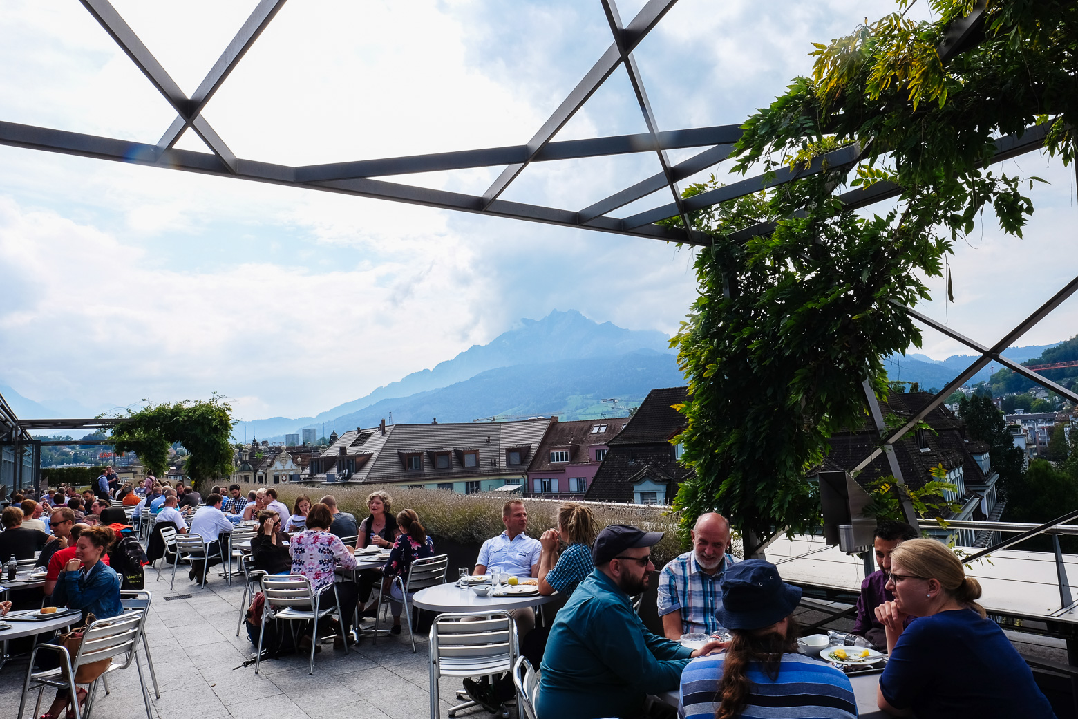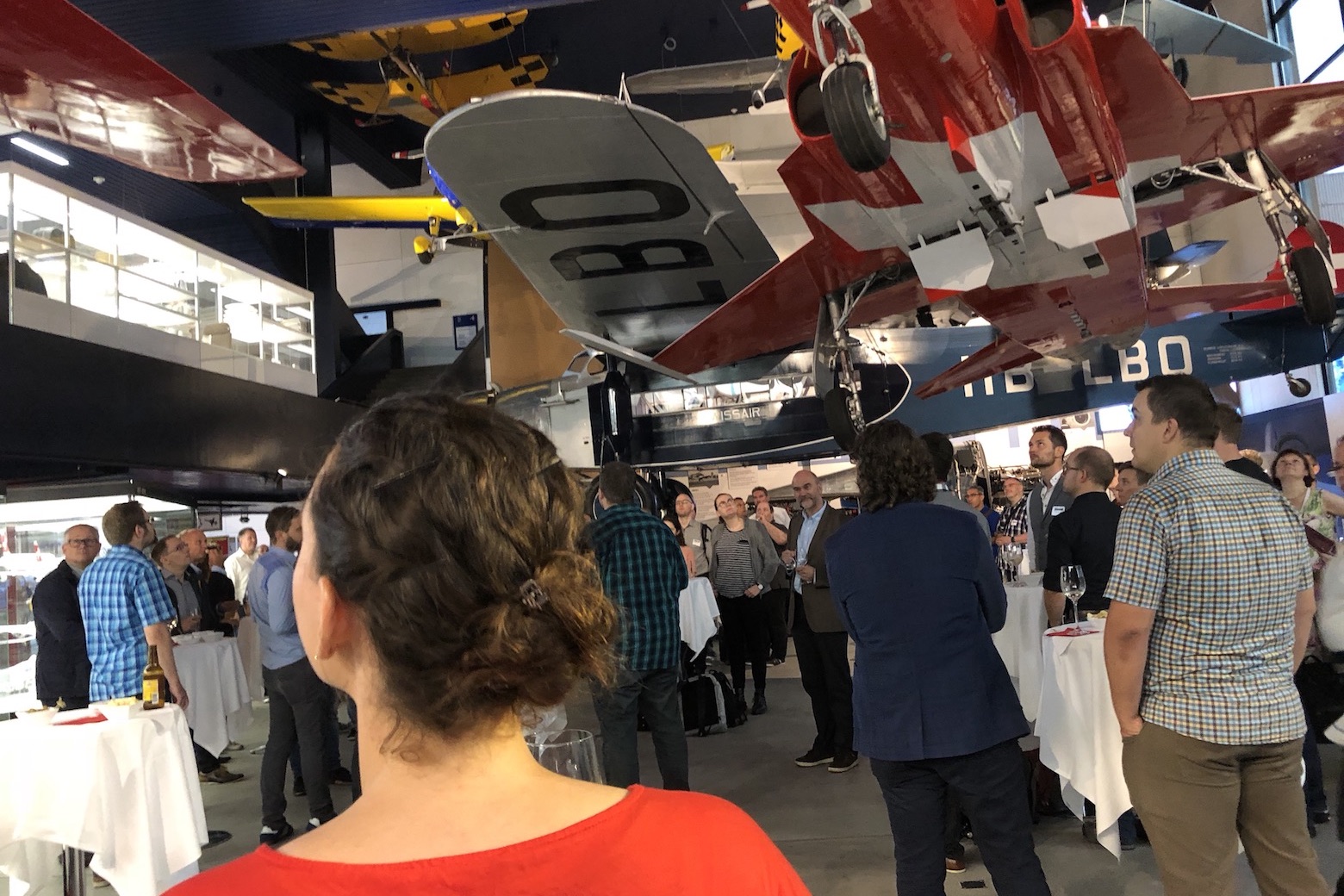 Am Abend fand man sich wieder zusammen, um in größeren Gruppen den Weg zum Social Event zu meistern. Im herbstlichen Platzregen waren viele dabei froh, dass es für Hotelgäste in Luzern ein freies Nahverkehrsticket gibt. In Bussen gelangten die meisten Teilnehmer so halbwegs trocken ins Verkehrshaus Luzern. Dort erwartete sie in der 3700 Quadratmeter großen Halle „Luft- und Raumfahrt“ ein beeindruckendes Ambiente. Der typische Apéro fand umgeben von historischen Flugzeugen und Flugapparaten statt. Angestellte des Museums informierten über die Ausstellung. Am Flugsimulator bildete sich schnell eine lange Schlange interessierter ILIASten. Auch der weitere Verlauf des Abends im Museumsrestaurant und in den Bars und Kneipen von Luzern fand großen Zuspruch.