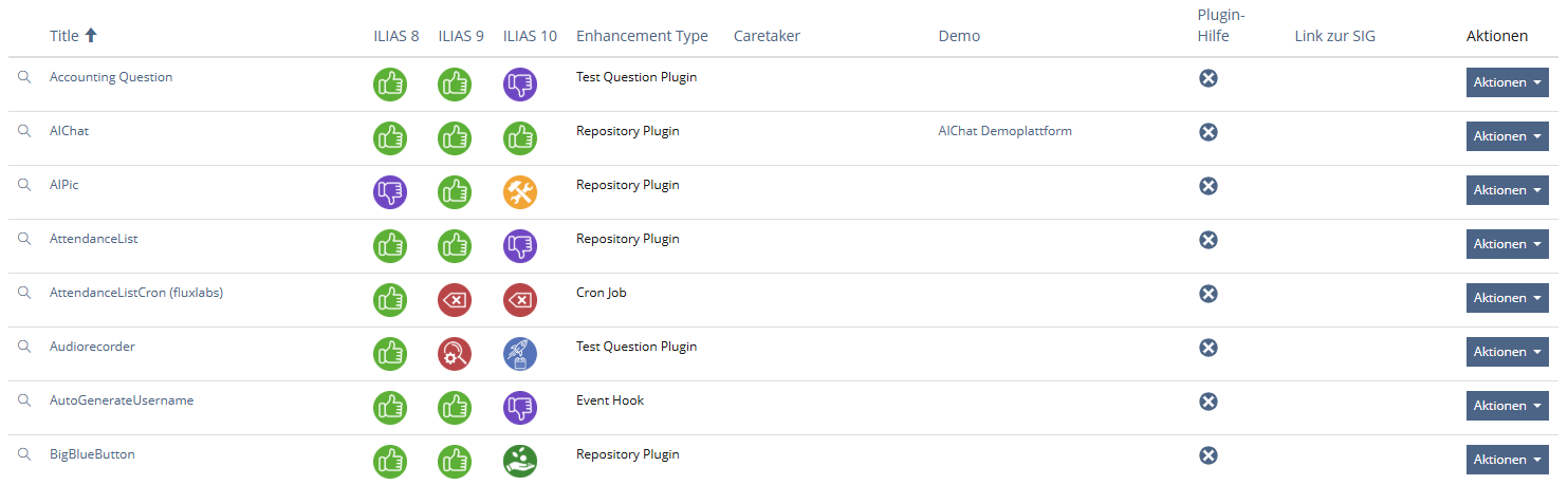 The increasingly discussed topic of plugins was addressed by Tomke Fries (Uni Hannover), who presented the revised data collection for plugins, which has been enriched with much additional information. With this, the ILIAS Society would like to ensure that plugins are available early for new ILIAS versions and that community members agree to finance plugin updates at an early stage.