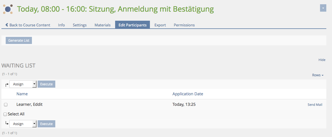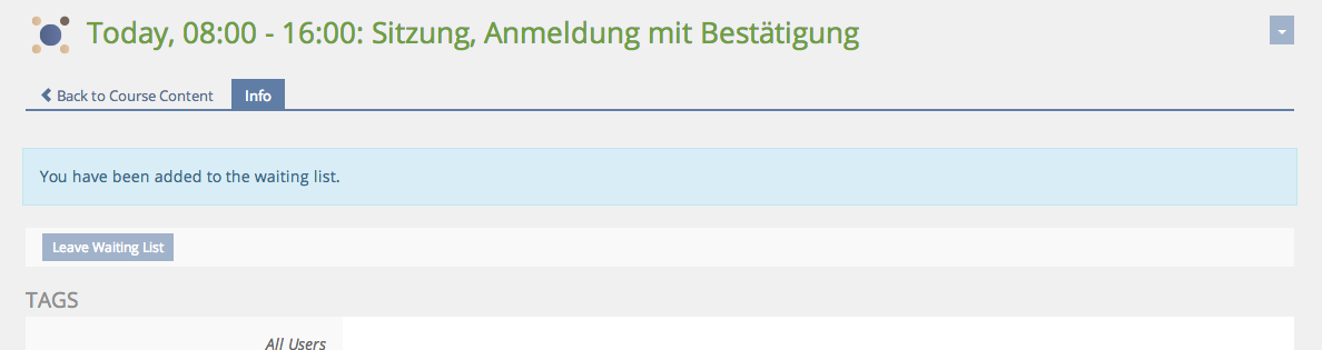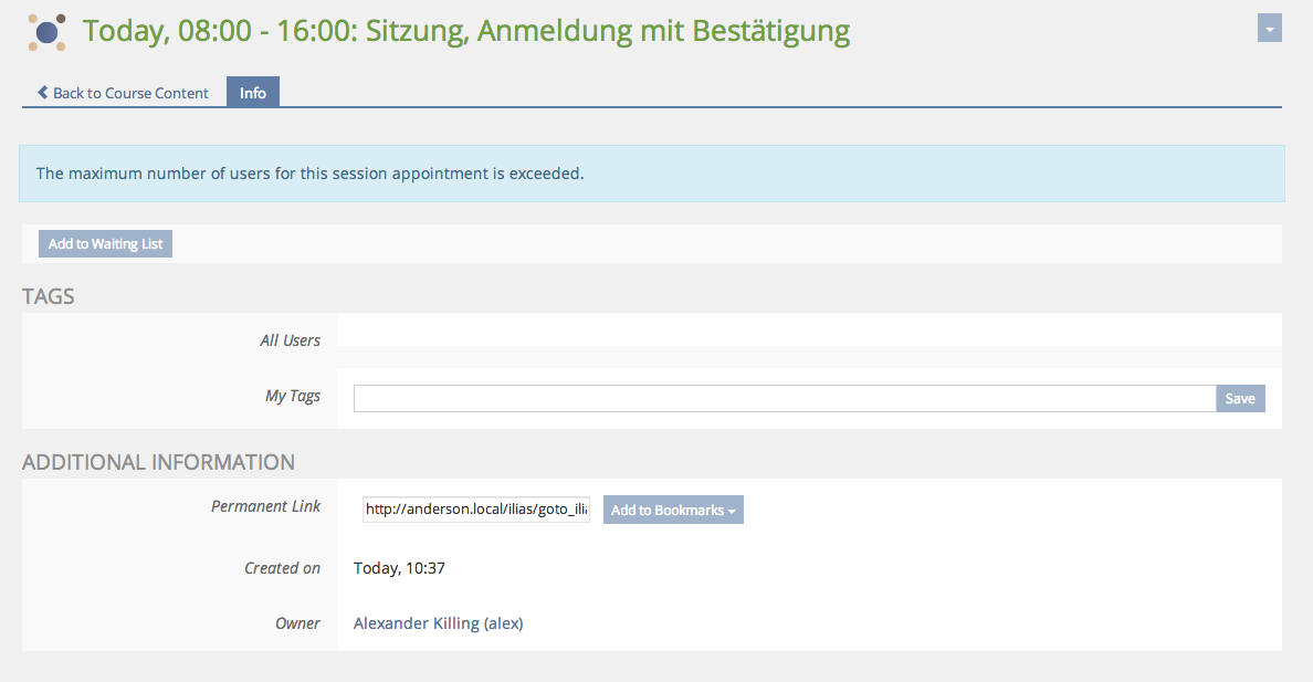 Learner clicks on session (number exceeded) and "Add to Waiting List":
