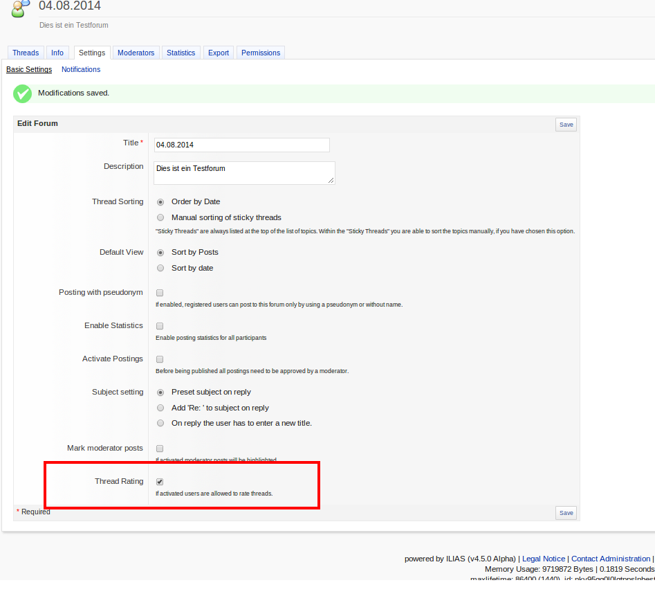 - deactivating the rating of threads on the settings page hides rating column on forum thread page