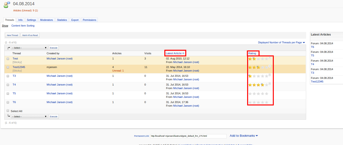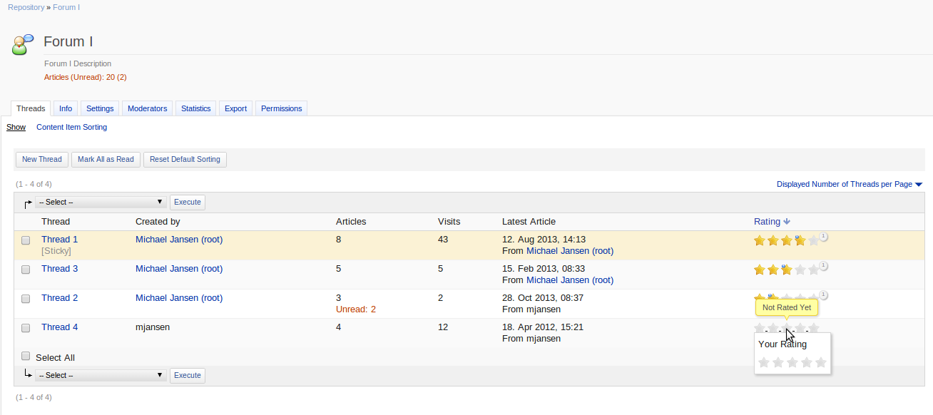 - activating the rating of threads on the settings page shows rating column on forum thread page