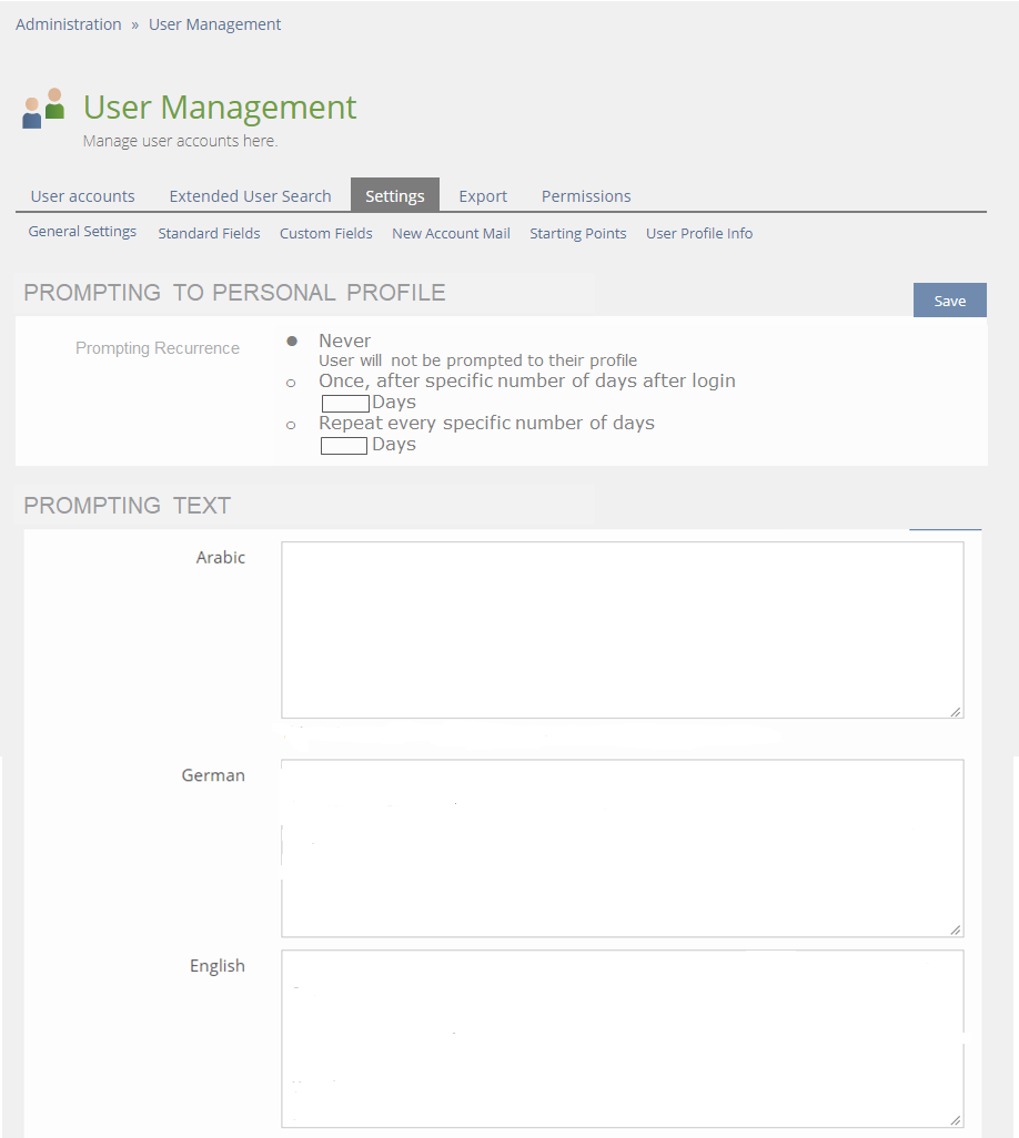 - Prompting Text (Textarea for each activated language)