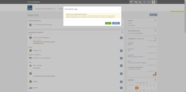 If users regularly use ILIAS on their personal device, you will need to log in again once the session has expired. In order to simplify the access and therefore working with ILIAS, the option "Permanent Login" should be added.