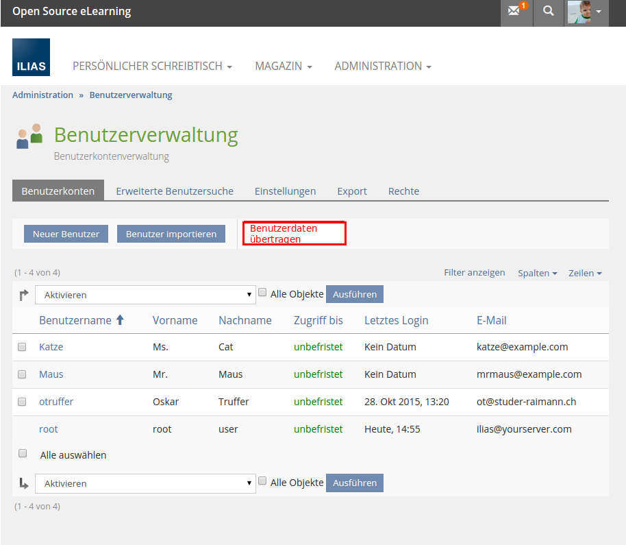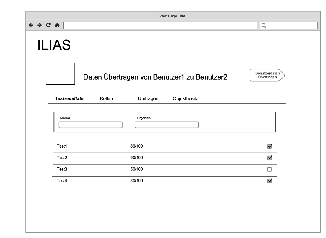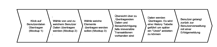 - Mock-up 3: Is this an underworld or a sub-tab or what else? How will passes be singled out for transfer? Will the un-singled passed stay with the other account? What happens to learning progress? How is this GUI supposed to grow if the user transfer service is to include more objects? Do I have to work through all of the tabs before I trigger my merging action? Specifically what kind of control ist on top in the giant arrow "Benutzerdaten übertragen"? I feel that the User Management there are already implementations for what I gather is supposed to be happening here. The new and the old interfaces should be harmonized as they do the same thing: