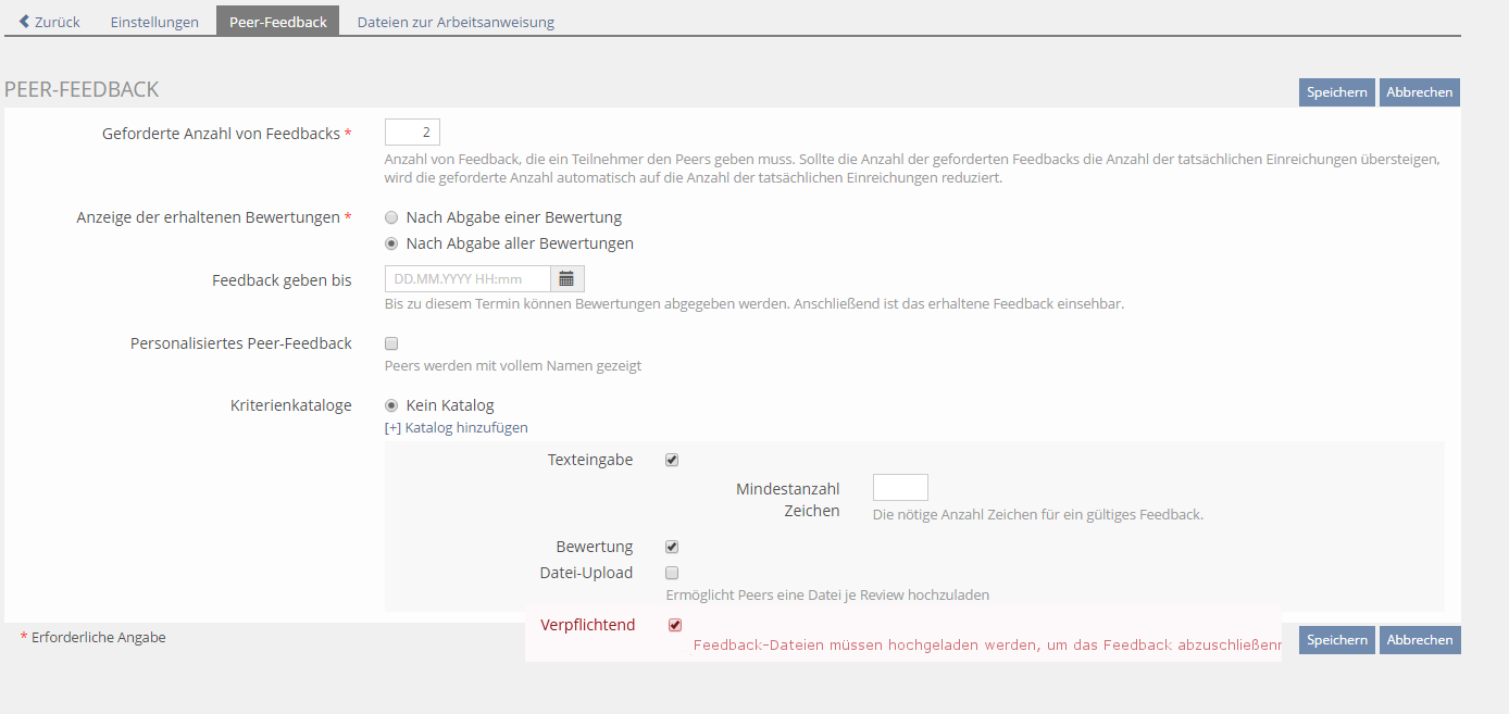 Obligatory peer feedback file upload