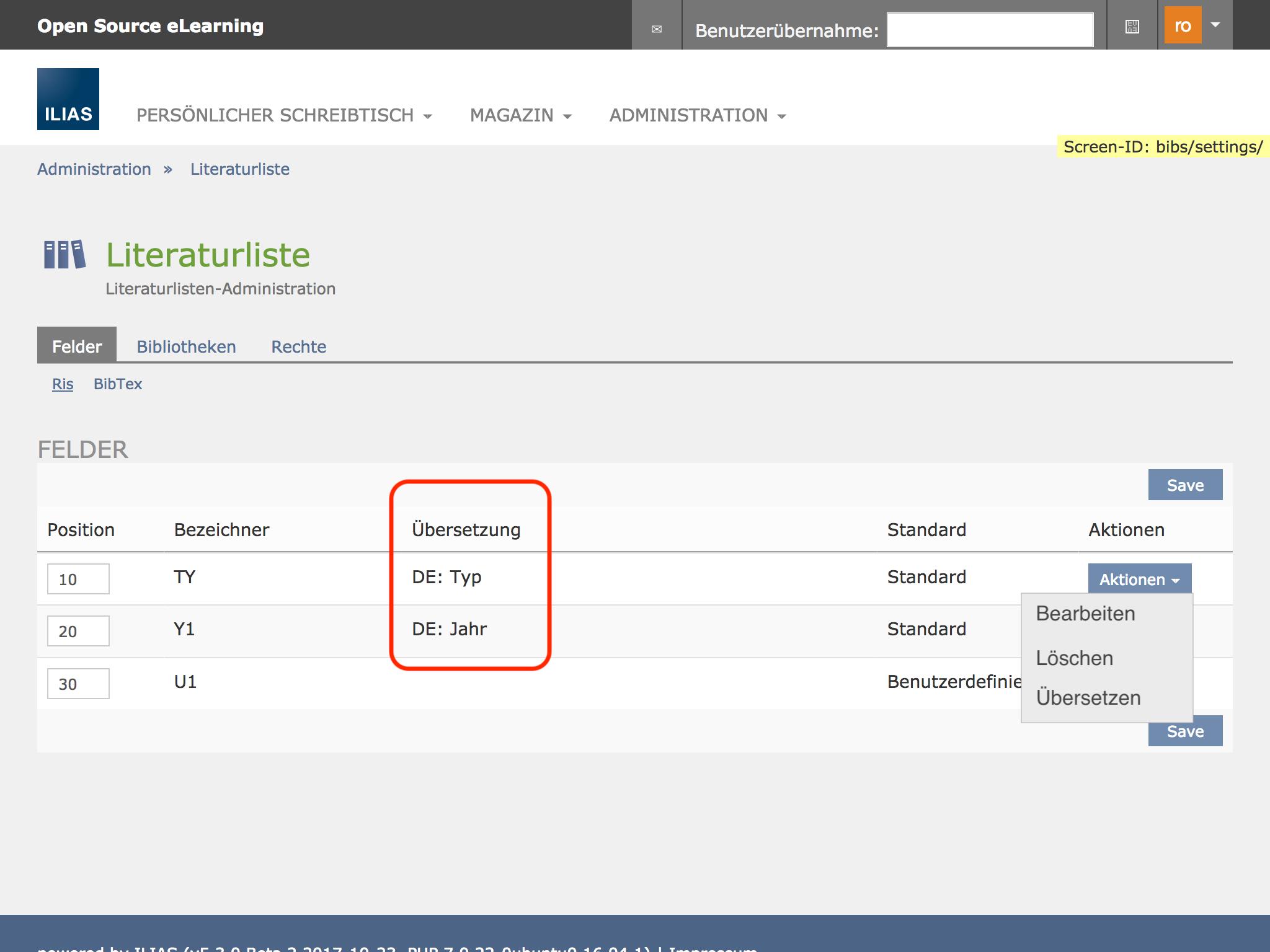 - bibs/settings: New Tab "Fields" / "Felder" divided by two subtabs "Ris" and "Bibtex".