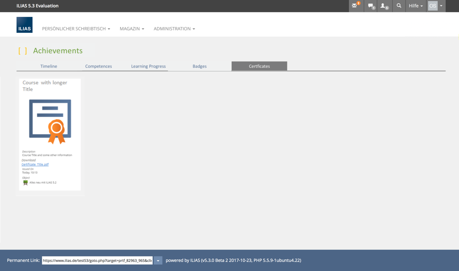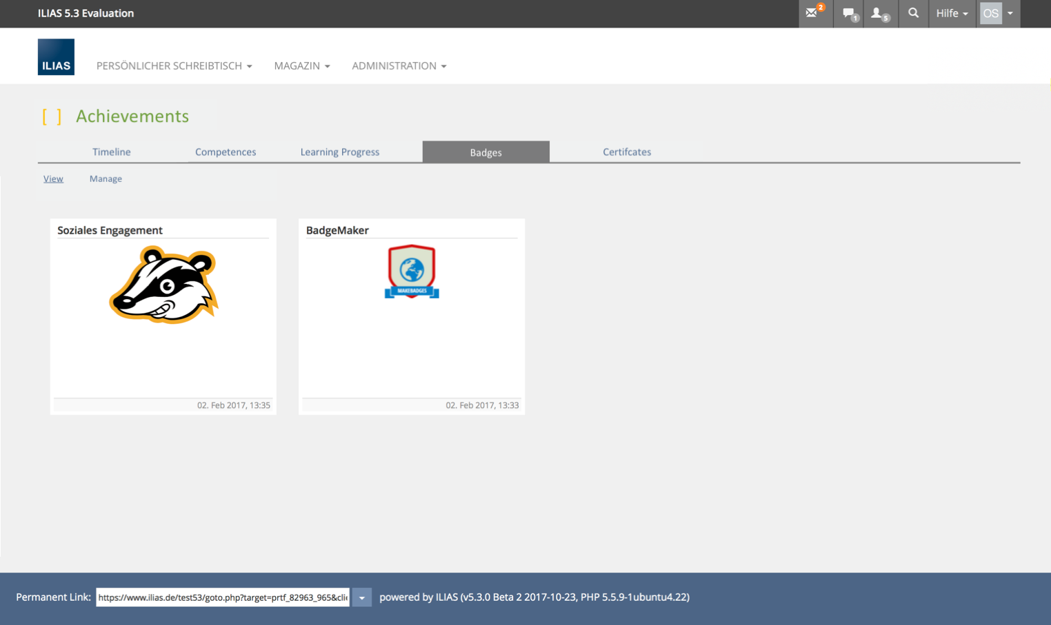 In ILIAS, different perspectives on one's own learning can be taken: competence orientation, learning objective orientation, learning progress and informal learning about badges.