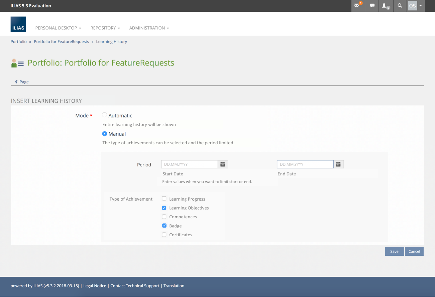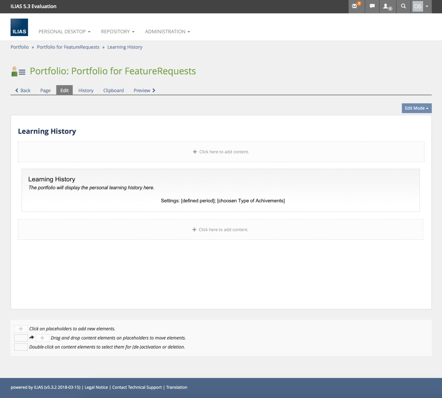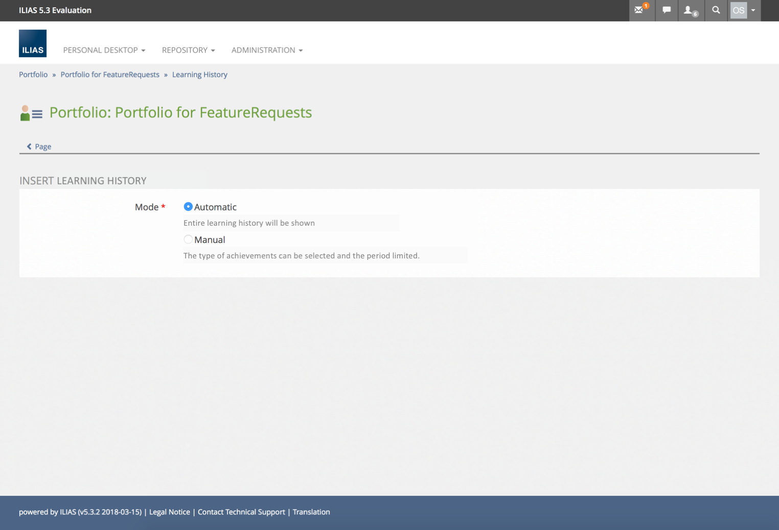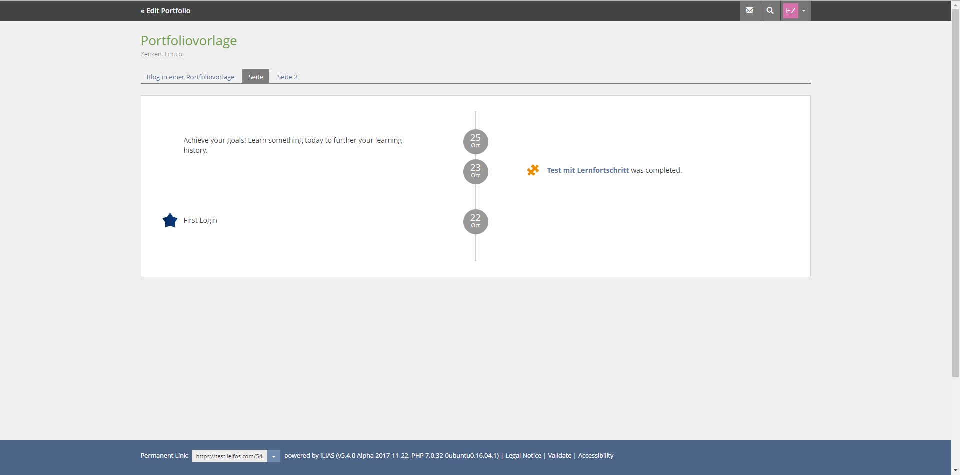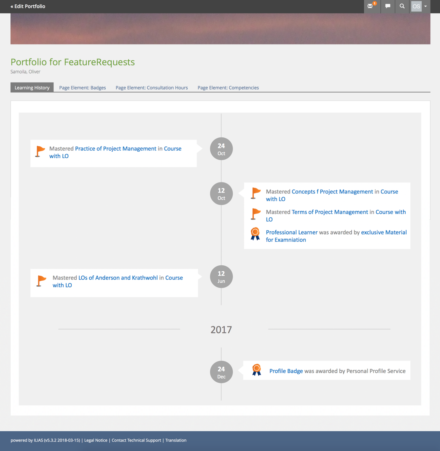 Idea C) Own page type "Learning History" or "Achievements" - next to the two existing page types "Page" and "Blog". Then an automatic reloading at the bottom of the page would be useful.