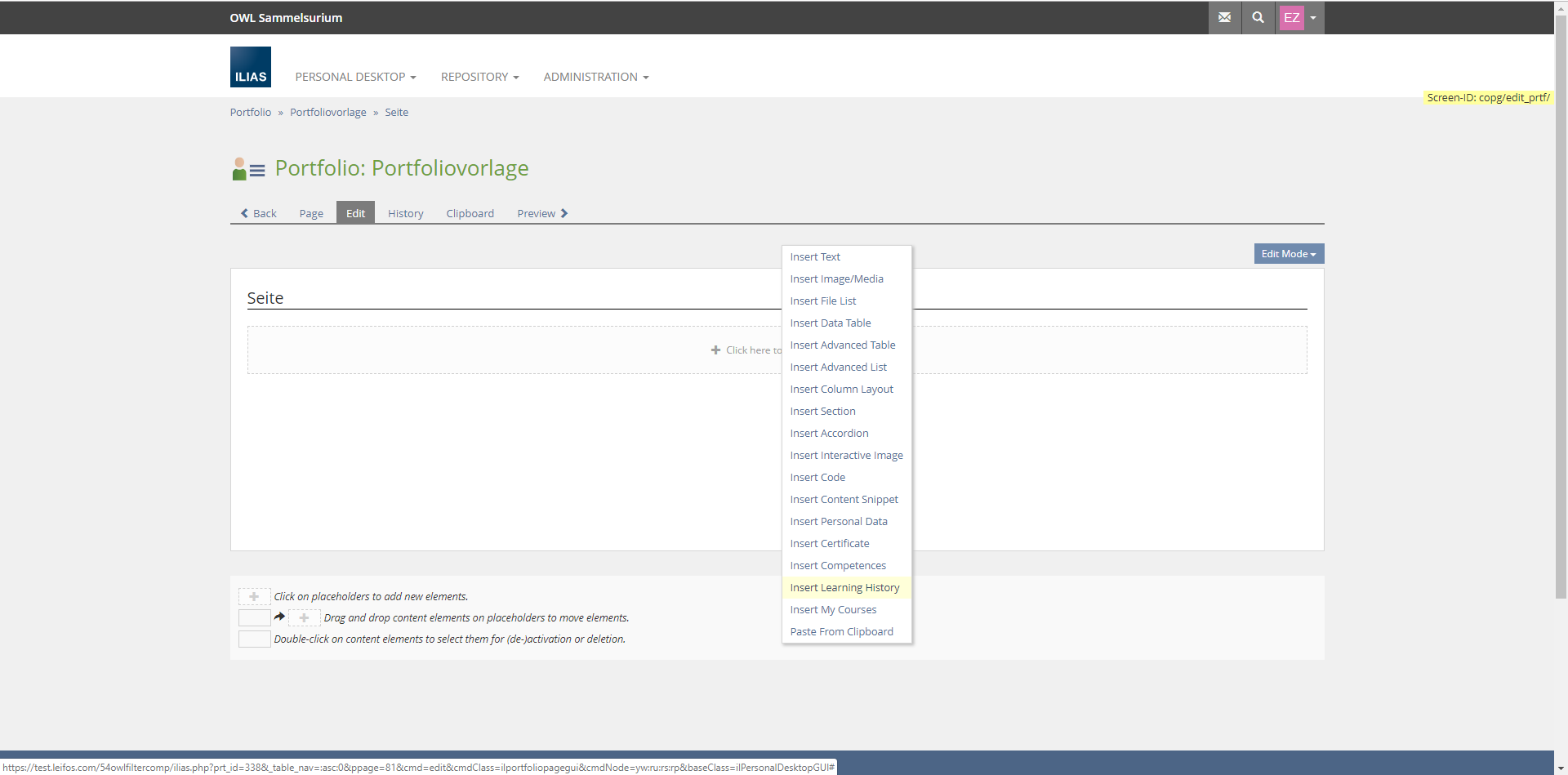 Therefore, the personal learning history should be included as a page element in the portfolio.