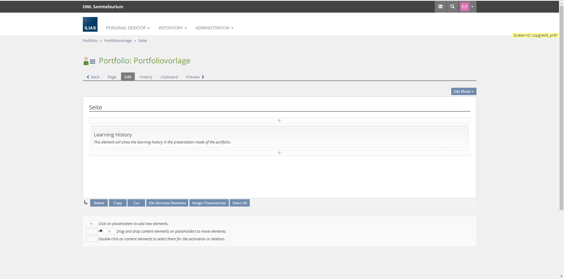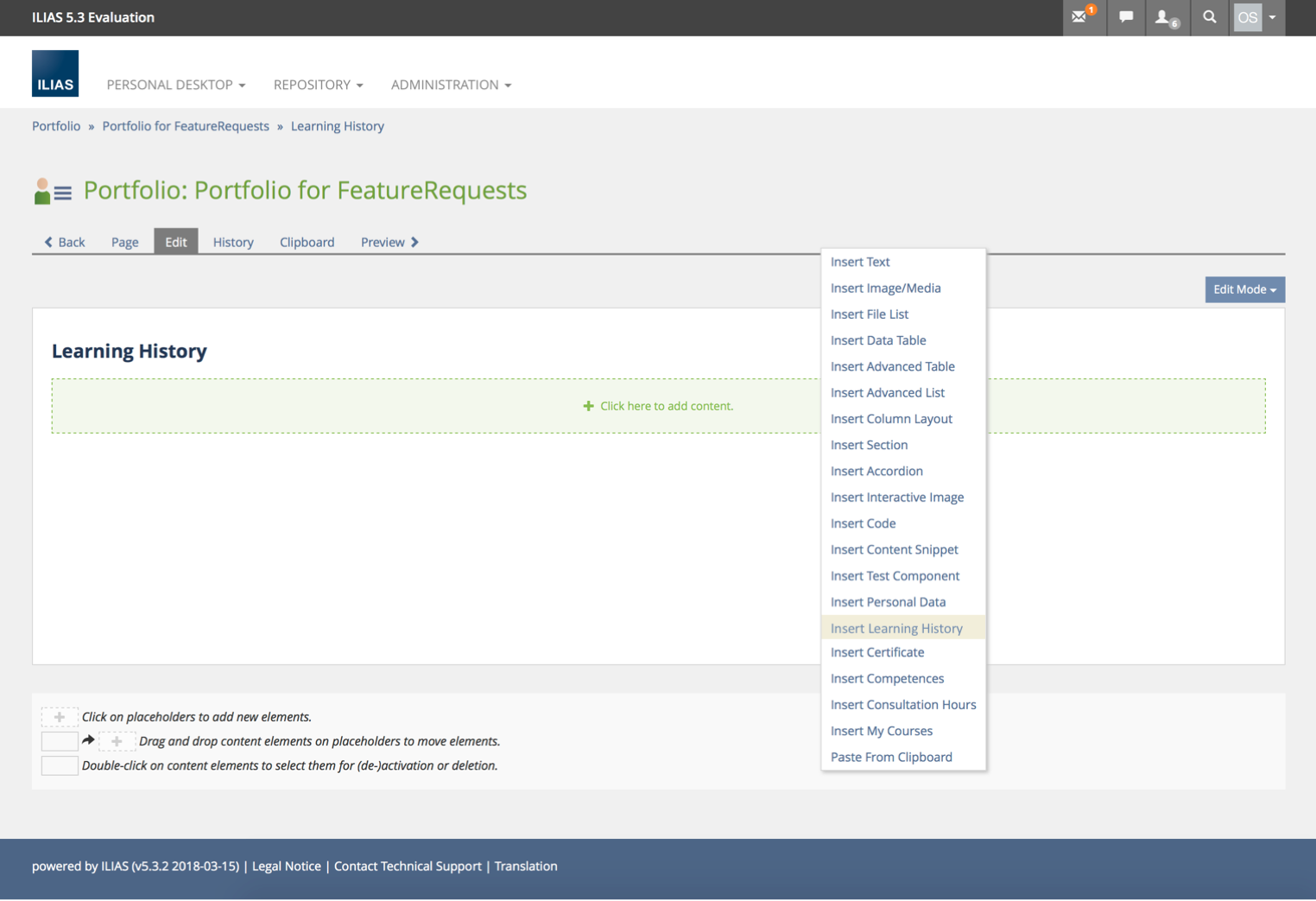 Page Element for Portfolios: Learning History