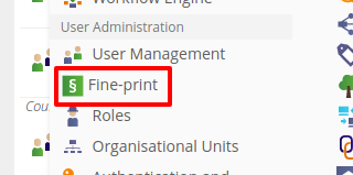 - Main administration node should not be 'Fine-print' but 'Agreements' (open to more agreements).