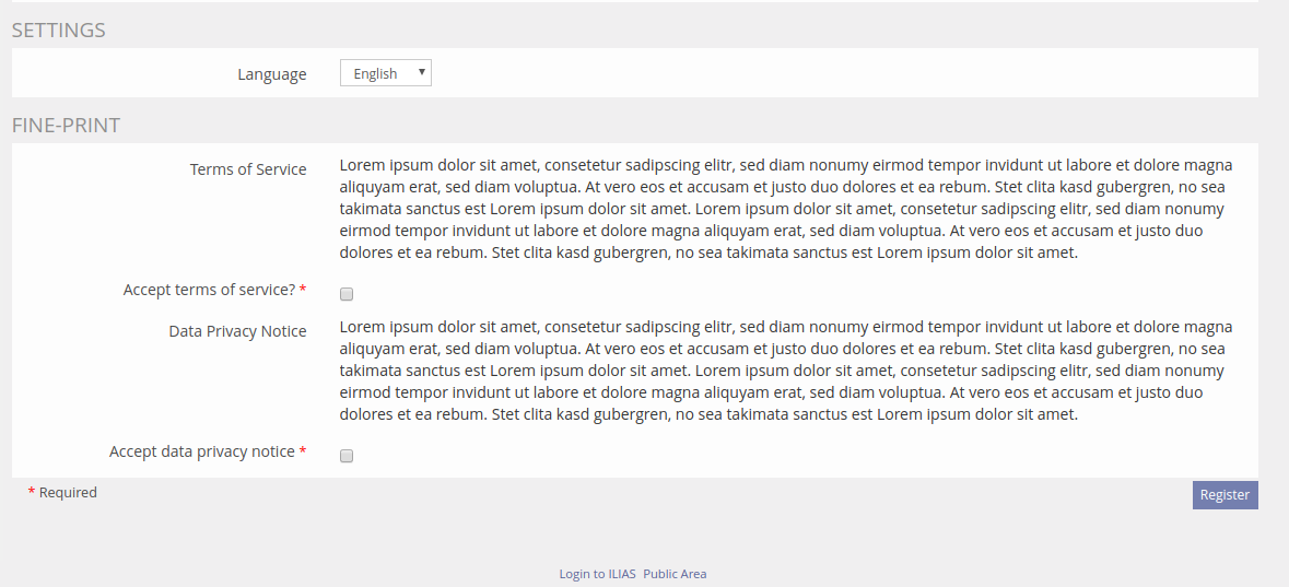 Some institutions using ILIAS need the possiblity to provide separate/explicit documents regarding 'Data Privacy Notice', e.g. imposed by a Data-protection Supervisor.