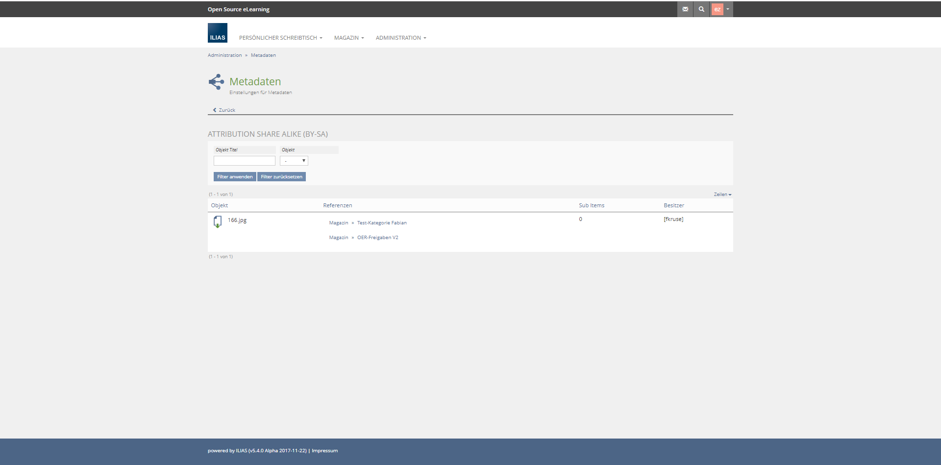 - It is not possible in the copyright administration to see which of the offered licences are used by which objects. At the time being, only the number of objects are listed.