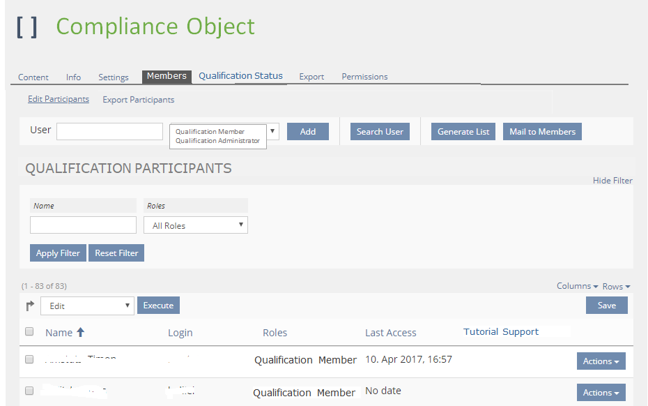 - I am missing information in the "Status per Member" report. I think it should have a differentiation of the "no valid qualification" status in (a) "before deadline" and (b) "after deadline".