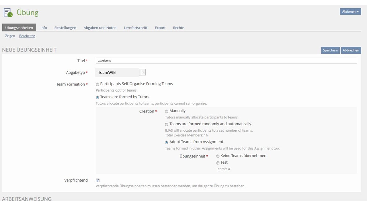 Same process like "Automatic Randomised Formation of Teams" but also implemented in assingment type wiki