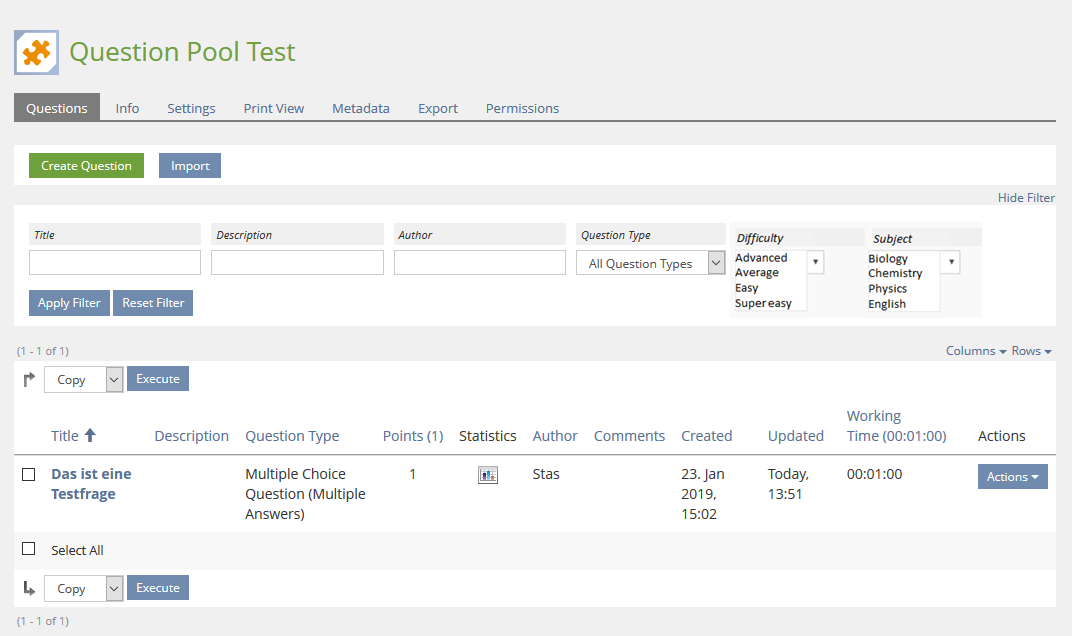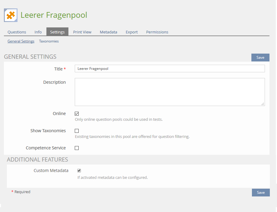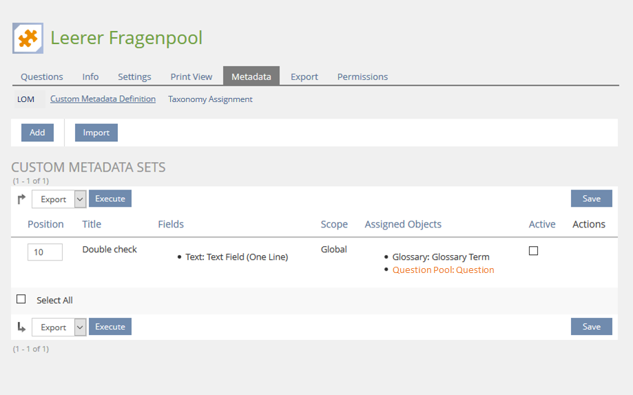 - Global Custom Metadata can be activated in the Settings-tab of a specific Question Pool.