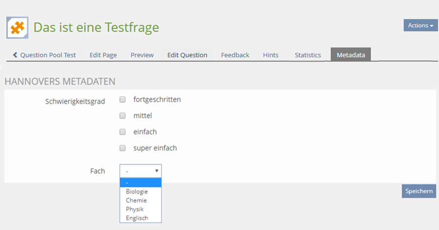 - Question Pool > Edit Question > NEW MEtadata-tab with form