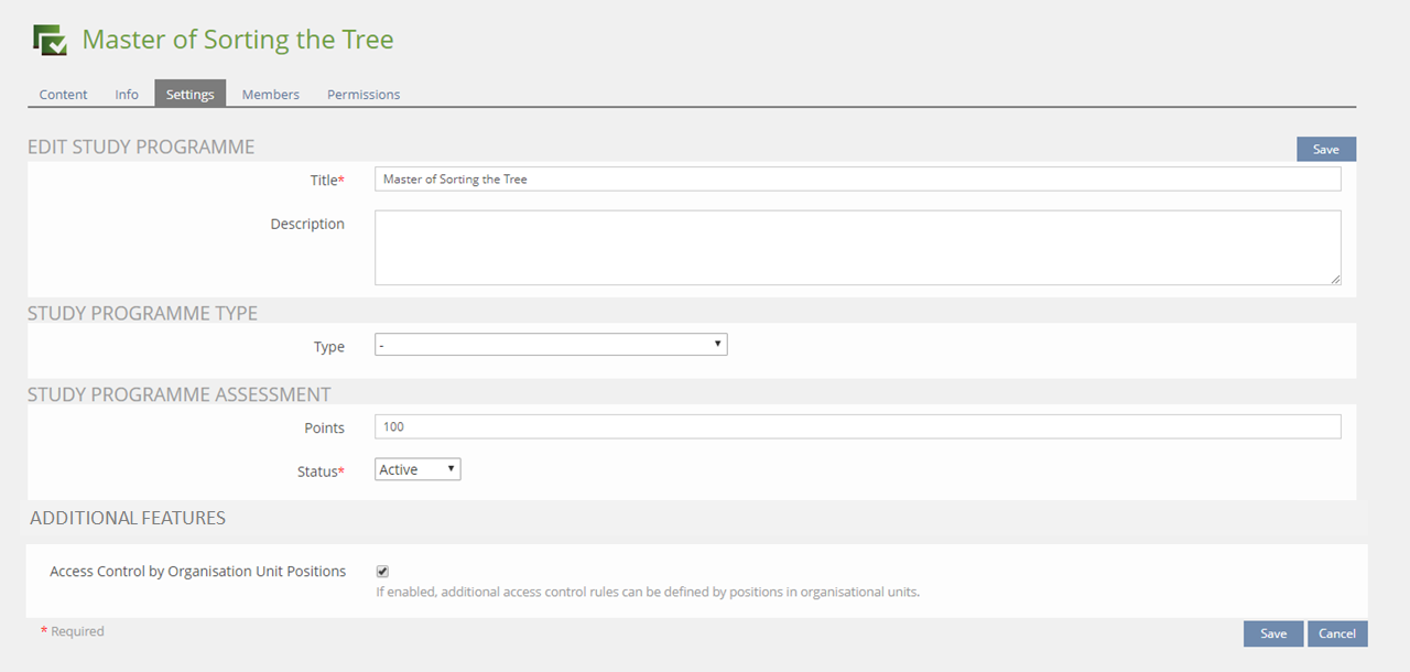 - The Permissions-tab of said Study Programme gets an "Orgunit Specific Permissions" sub-tab very much like the other objects that allow for Positions.