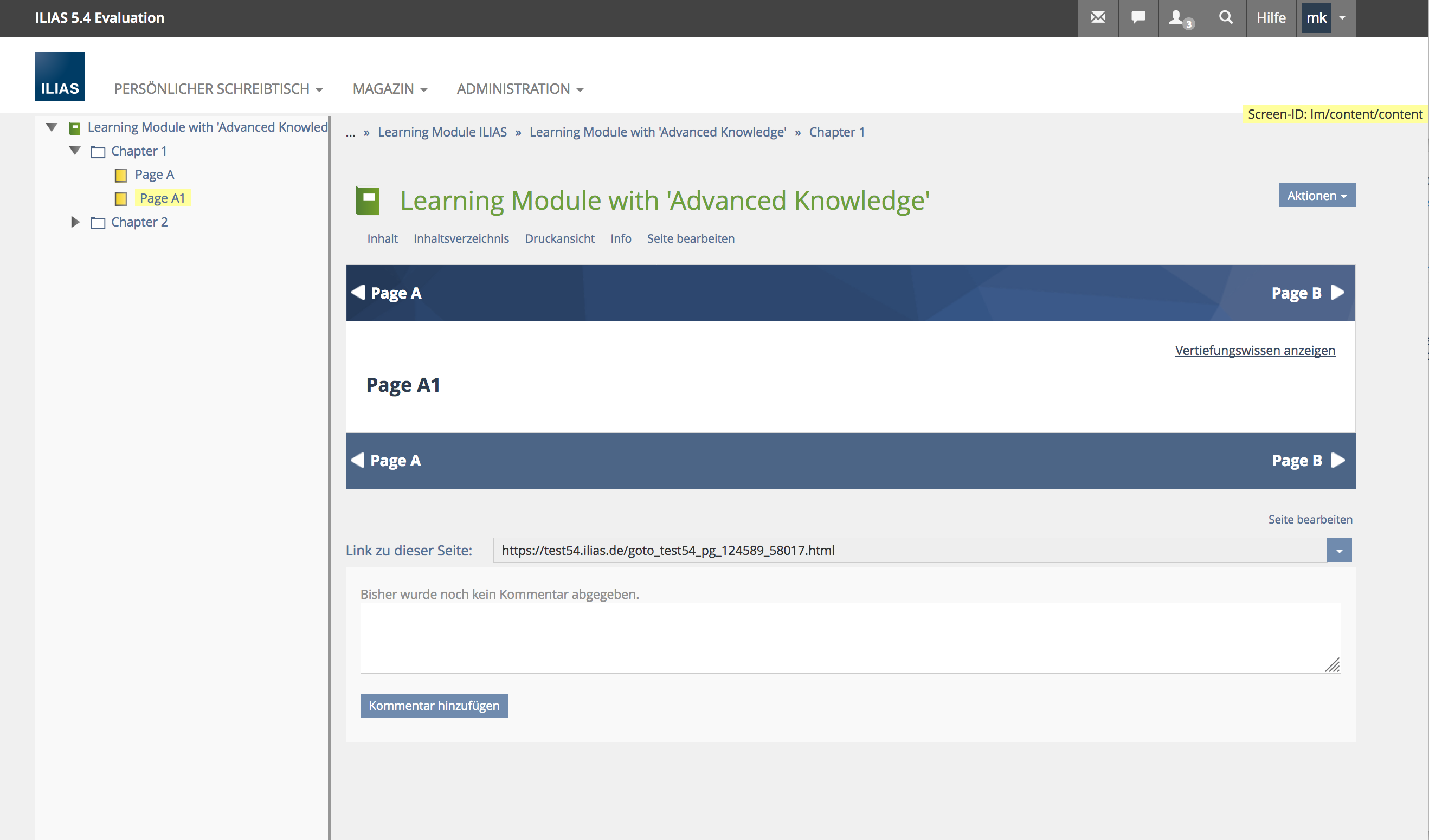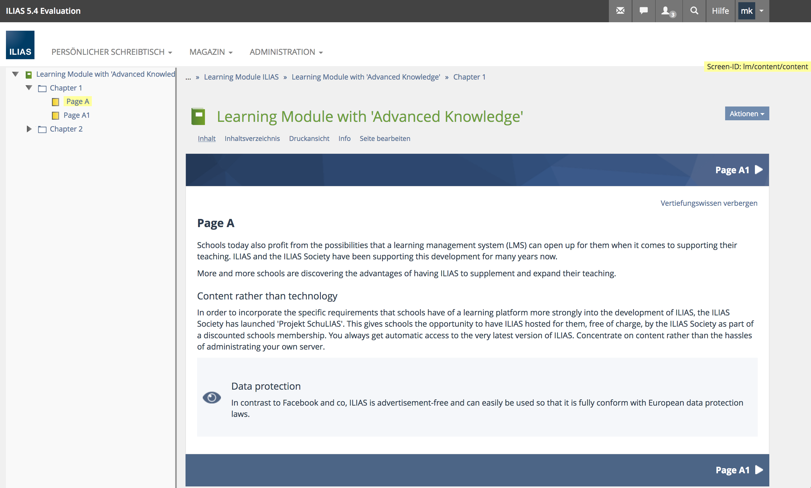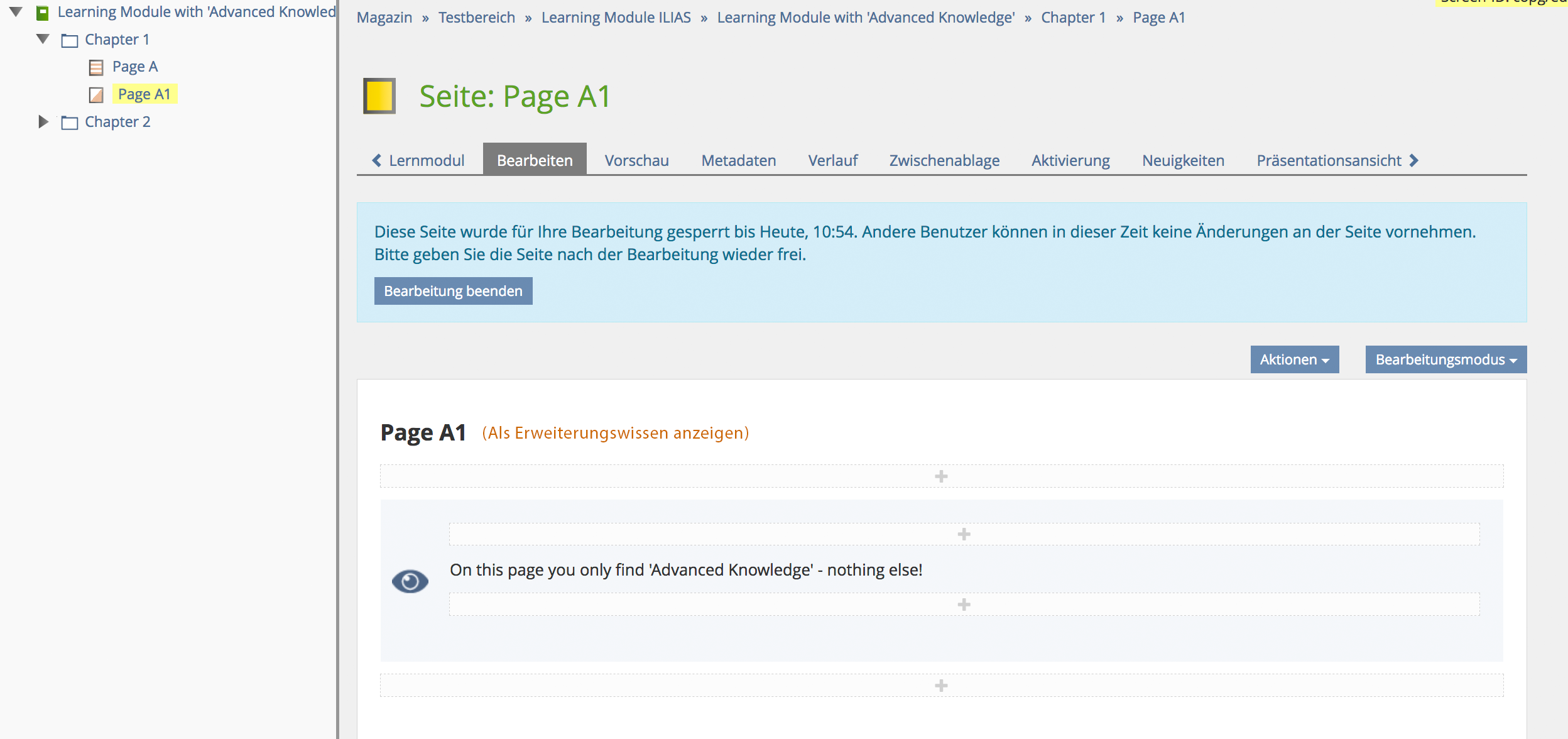 - An ILIAS learning module has several pages that contain only 'Advanced Knowledge'.