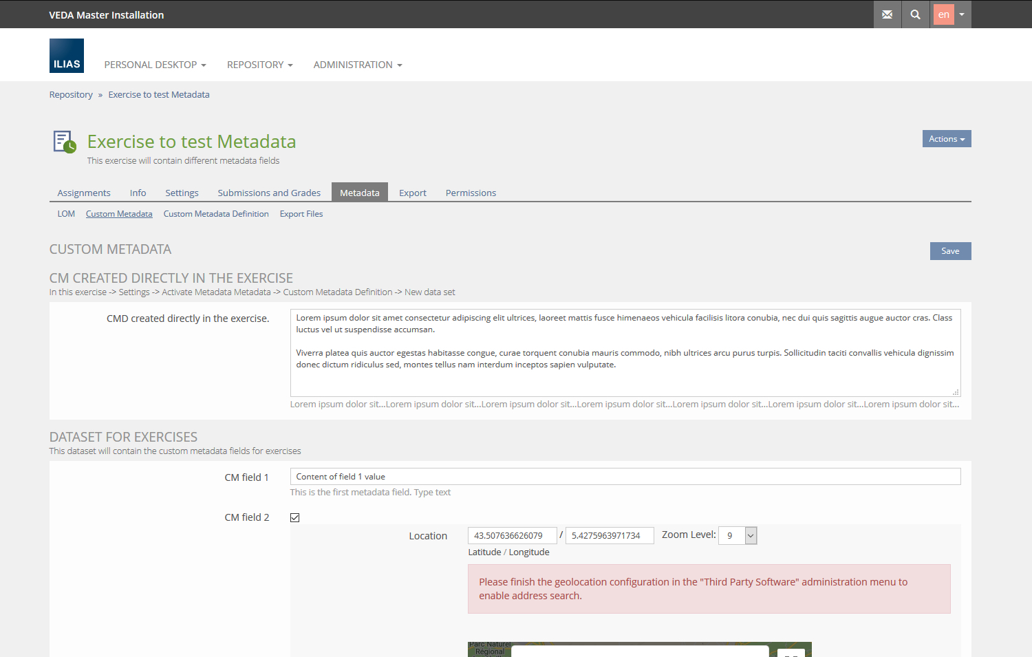 - The "Custom Metadata Sets"-table and the "New Data Set"- Form in ILIAS Administration > Metadata > Custom Metadata > Datasets is to allow global custom metadata sets to be assigned to Excersises.