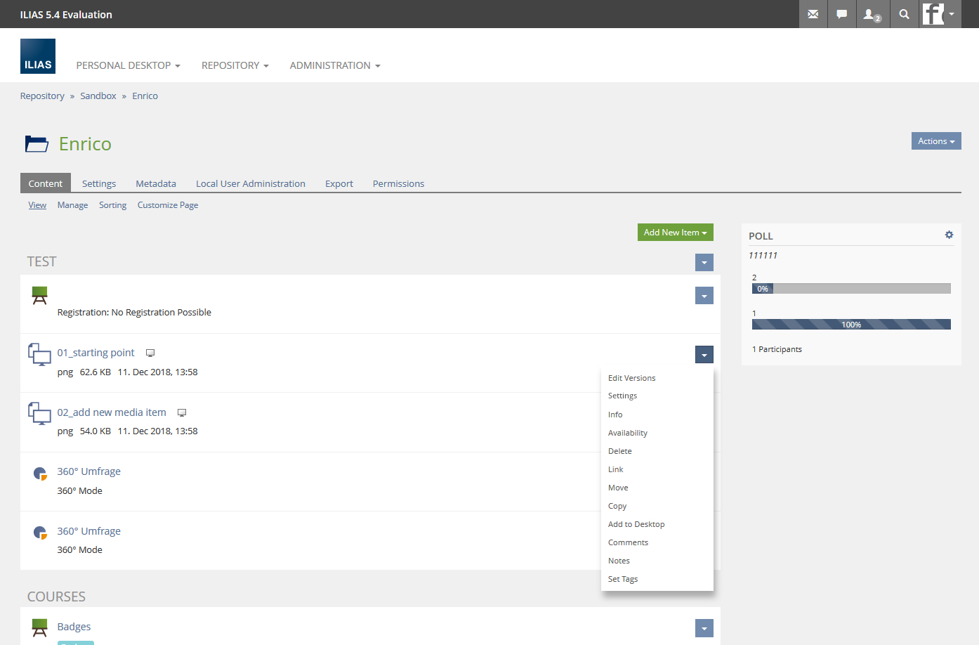 JourFixe, ILIAS [jourfixe], 01 JUL 2019 : We highly appreciate this suggestion and schedule the feature for 6.0 and accept the separation of tabs (Settings | Versions) for 5.4 to solve the mentioned bugs in this component. Please consider the suggestions concerning tab positions by Matthias. And we allow to suggest a new request "File Preview for Tile Image" for 6.0 where Olivias suggestion could be presented and described as an additional feature for the file object.