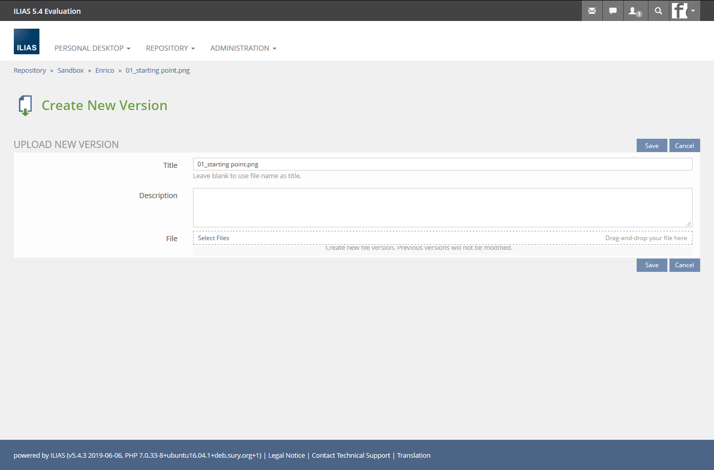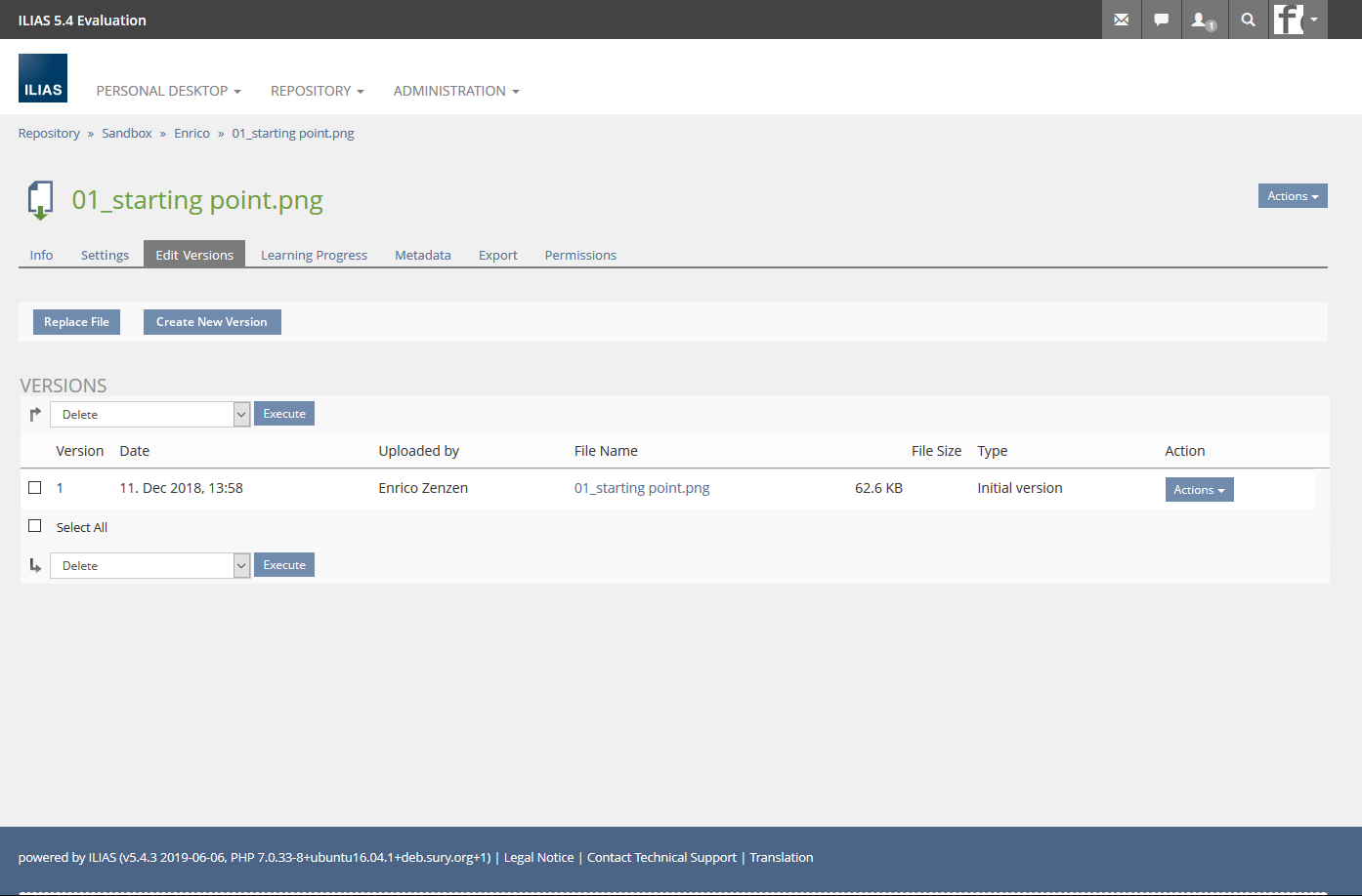 - Above the Versions-List, the user can use the toolbar to replace the file or create a new version.