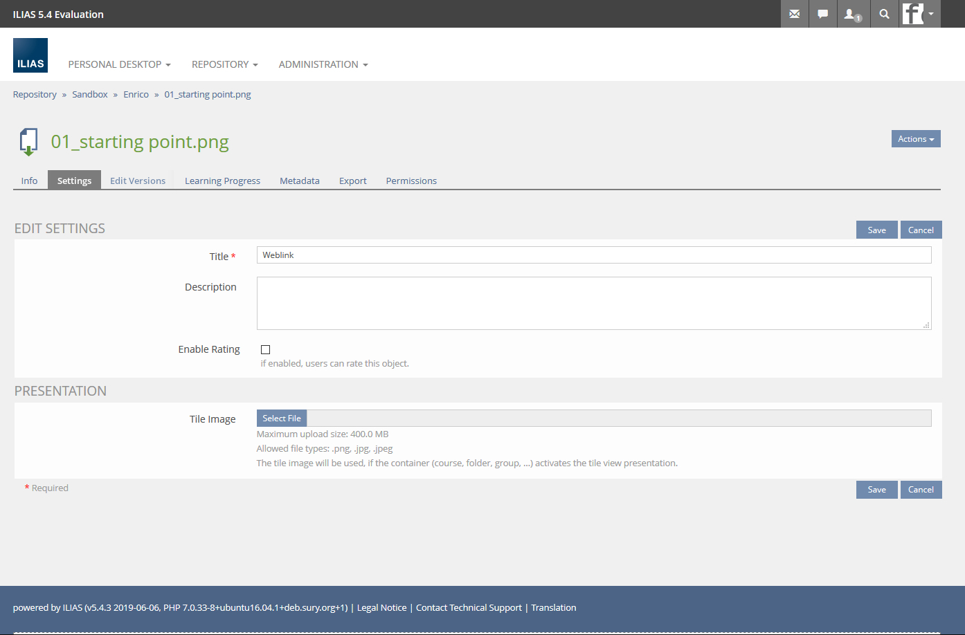 - The Tab contains the settings 'Title', 'Description', 'Enable Rating' and a new setting 'Tile Image': Here an Image can be uploaded to be used in the Tile-look.