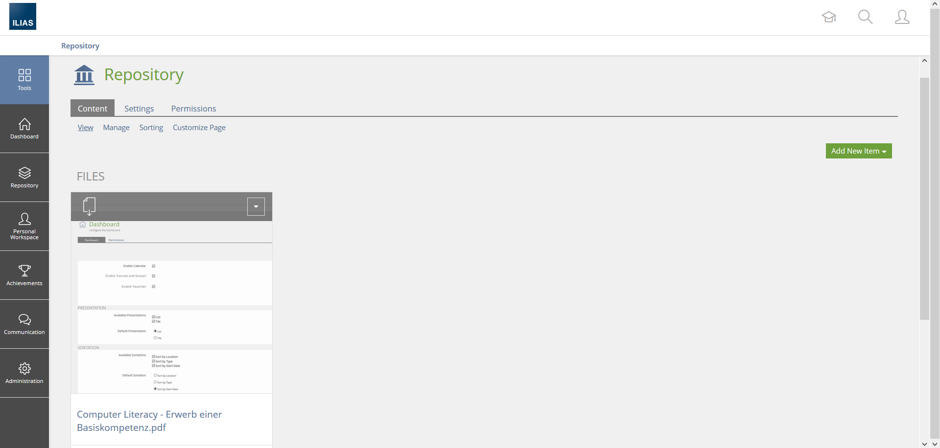 17.06.2019, Olivia Kaufmann: Why not use the file preview as the tile image for files? An Admin can enable the file preview as the tile image in the the edit-tab of the file. There would need to be an extra checkbox .