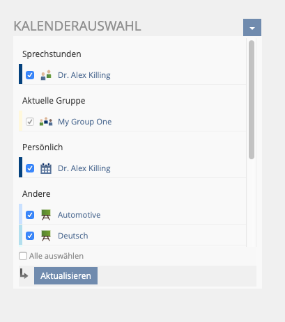 - Calendar > Calendar Selection Secondary Panel