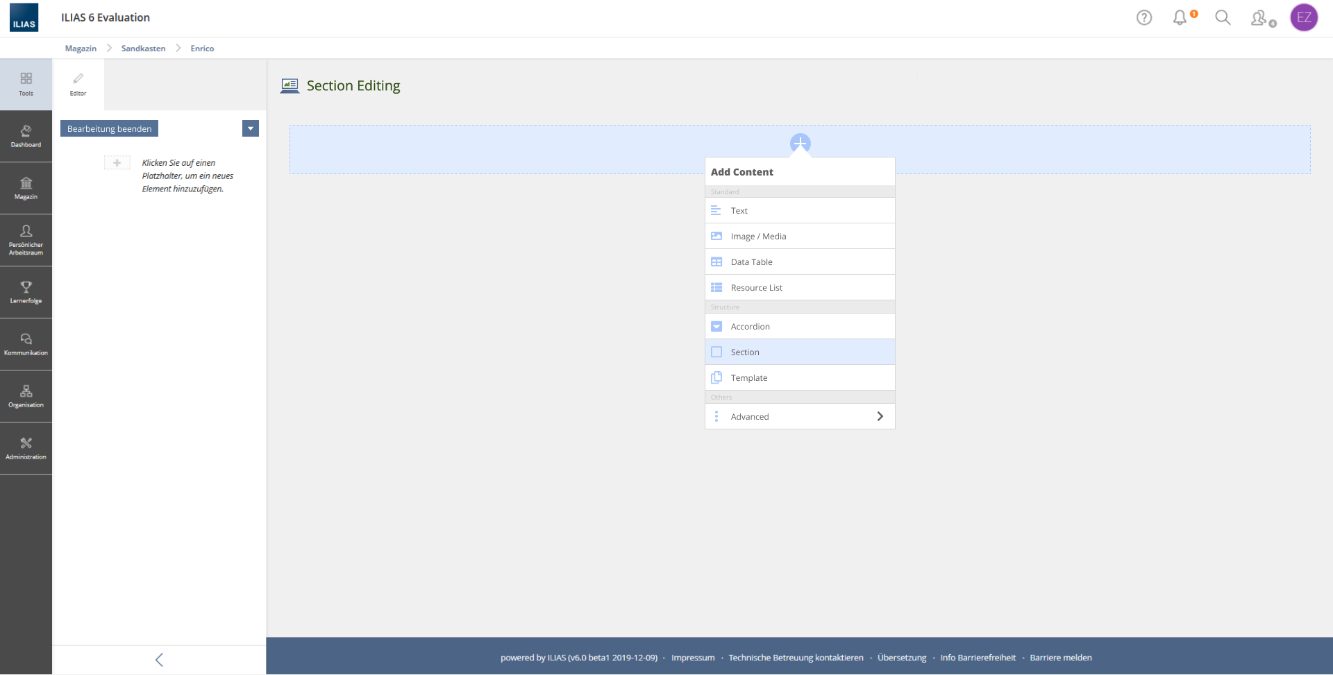Container Elements (Status ILIAS 6):