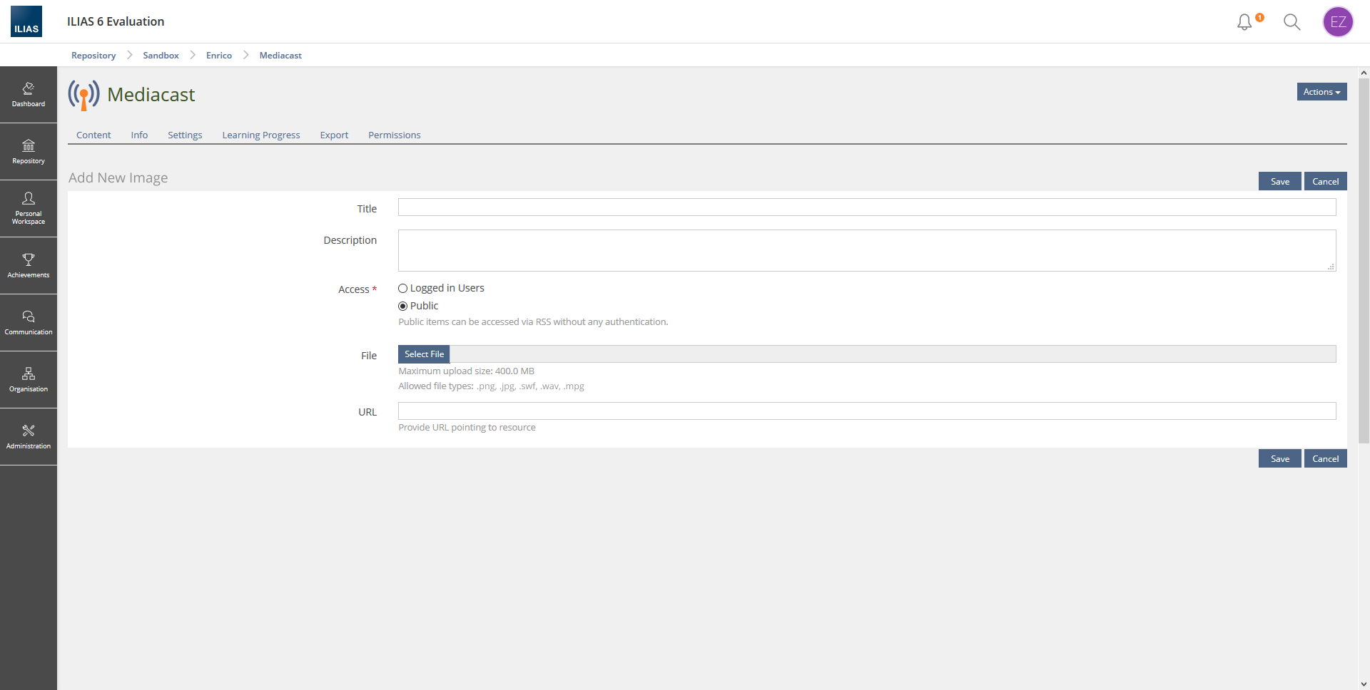- The form is drastically simplified and adapted to the media type "Image".