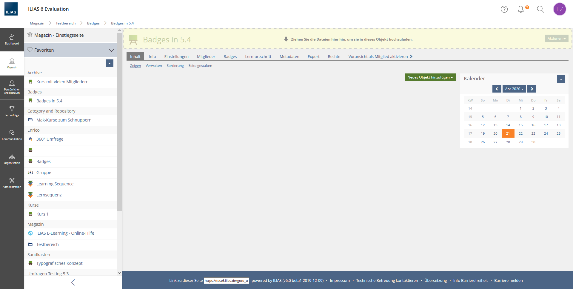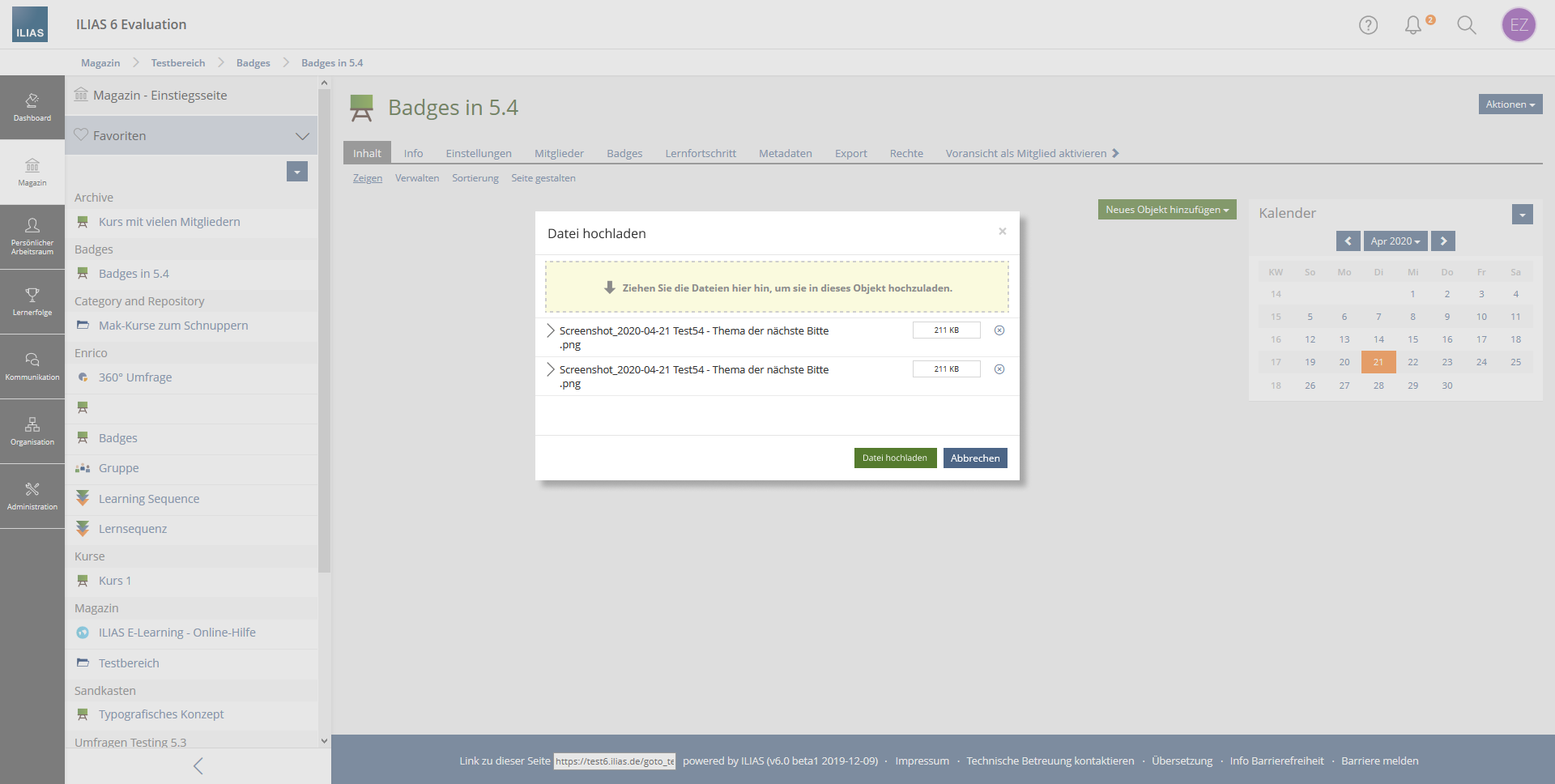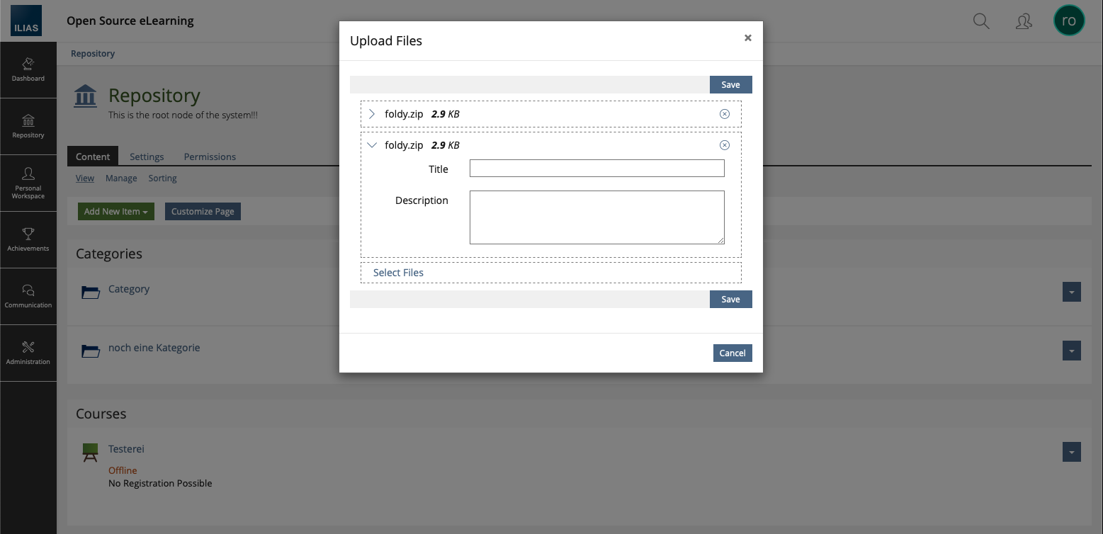 - file upload via drag and drop in courses, groups or folders