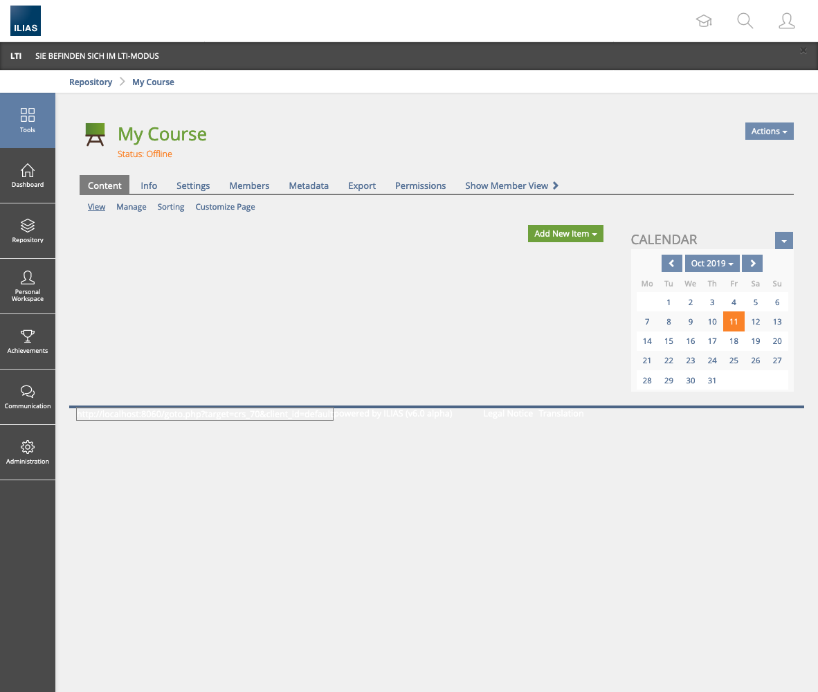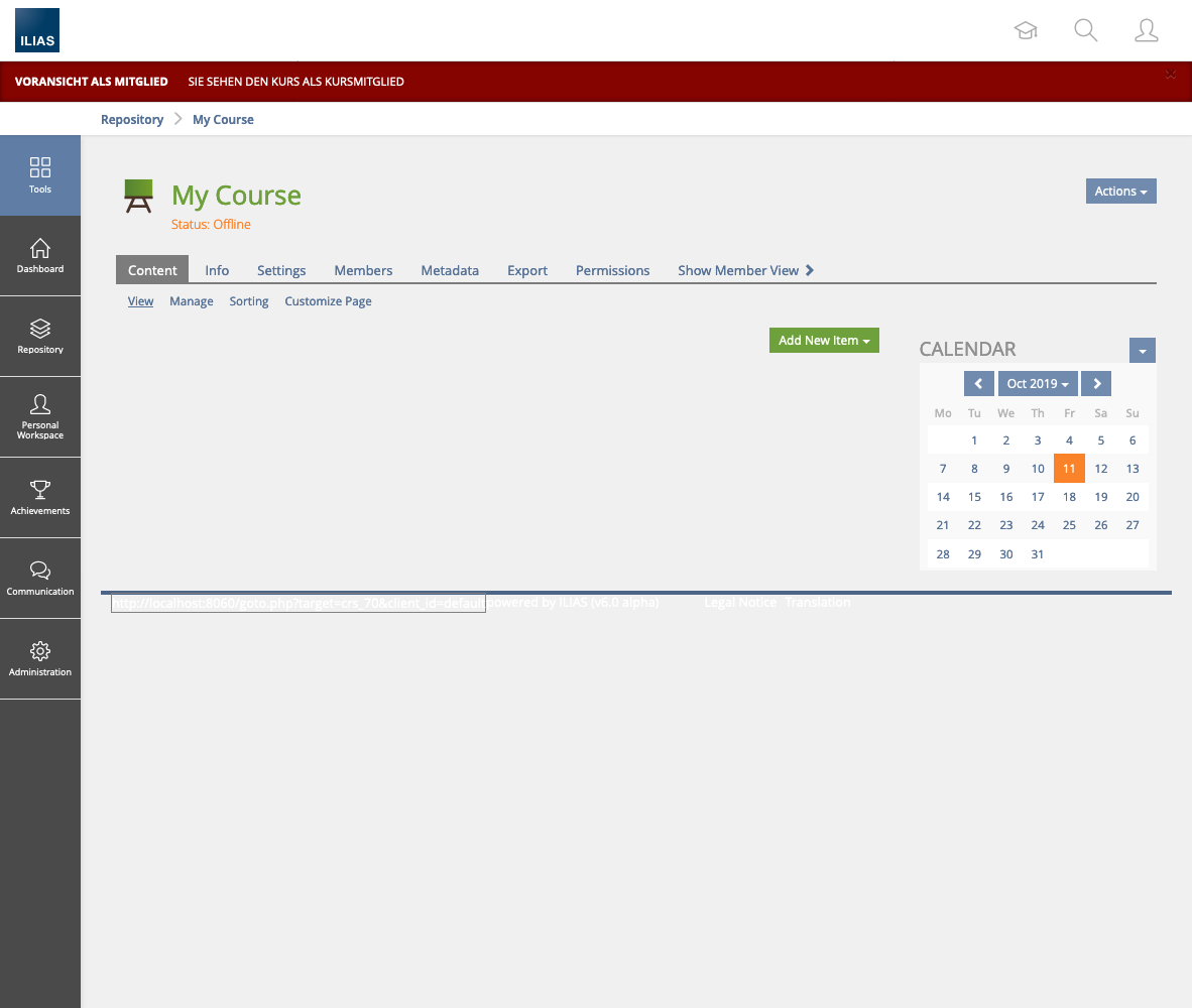 As with the MainMenu administration in ILIAS 5.4 in combination with the GlobalScreen service it is possible to offer the same system for system notifications. This means that components themselves can provide SystemNotifications to the GlobalScreen-Service if required. For example the chat service can inform the user that the chat server is currently not available. Or the administration can tell the administrator role that the installation needs to be updated (see message in the current administration).