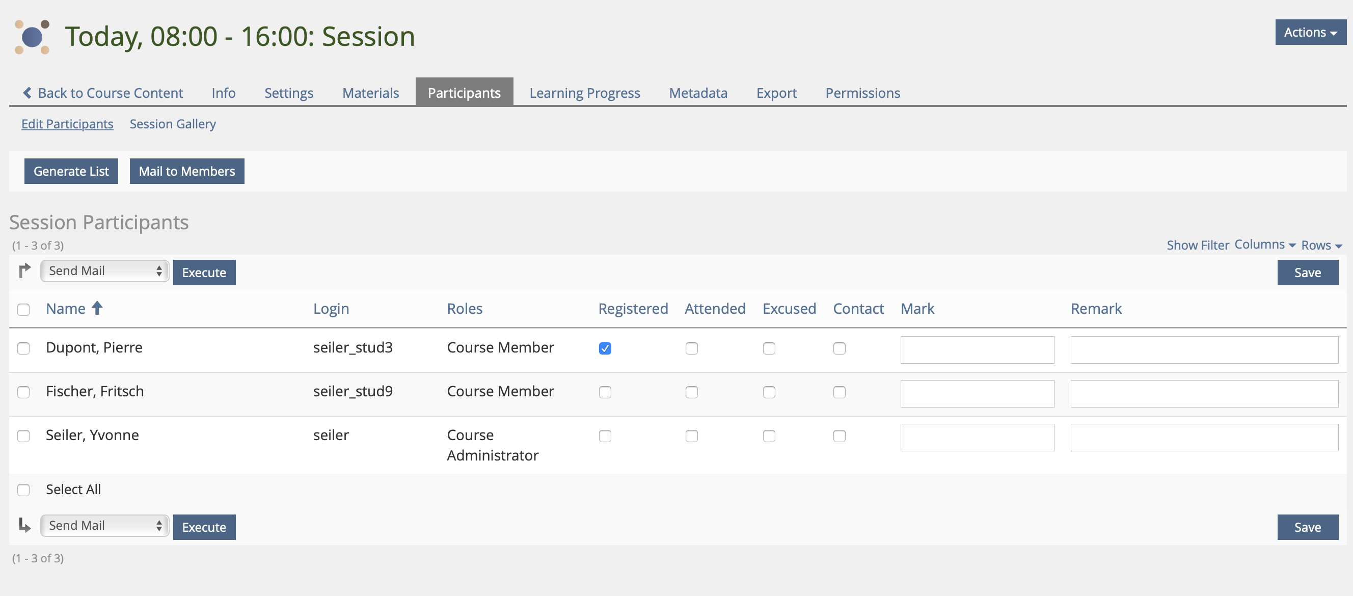 - Tab "Participants" > Edit Participants: Administrators (of surrounding courses or groups) have the possibility to register participants in the displayed column "Registered".