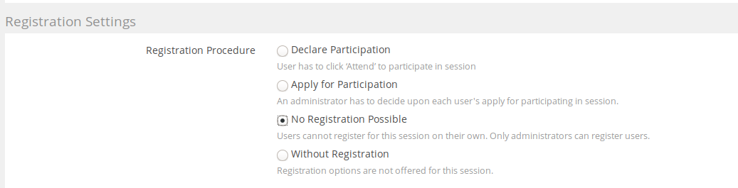 - englisch: Users cannot register for this session on their own. Only administrators can register users.