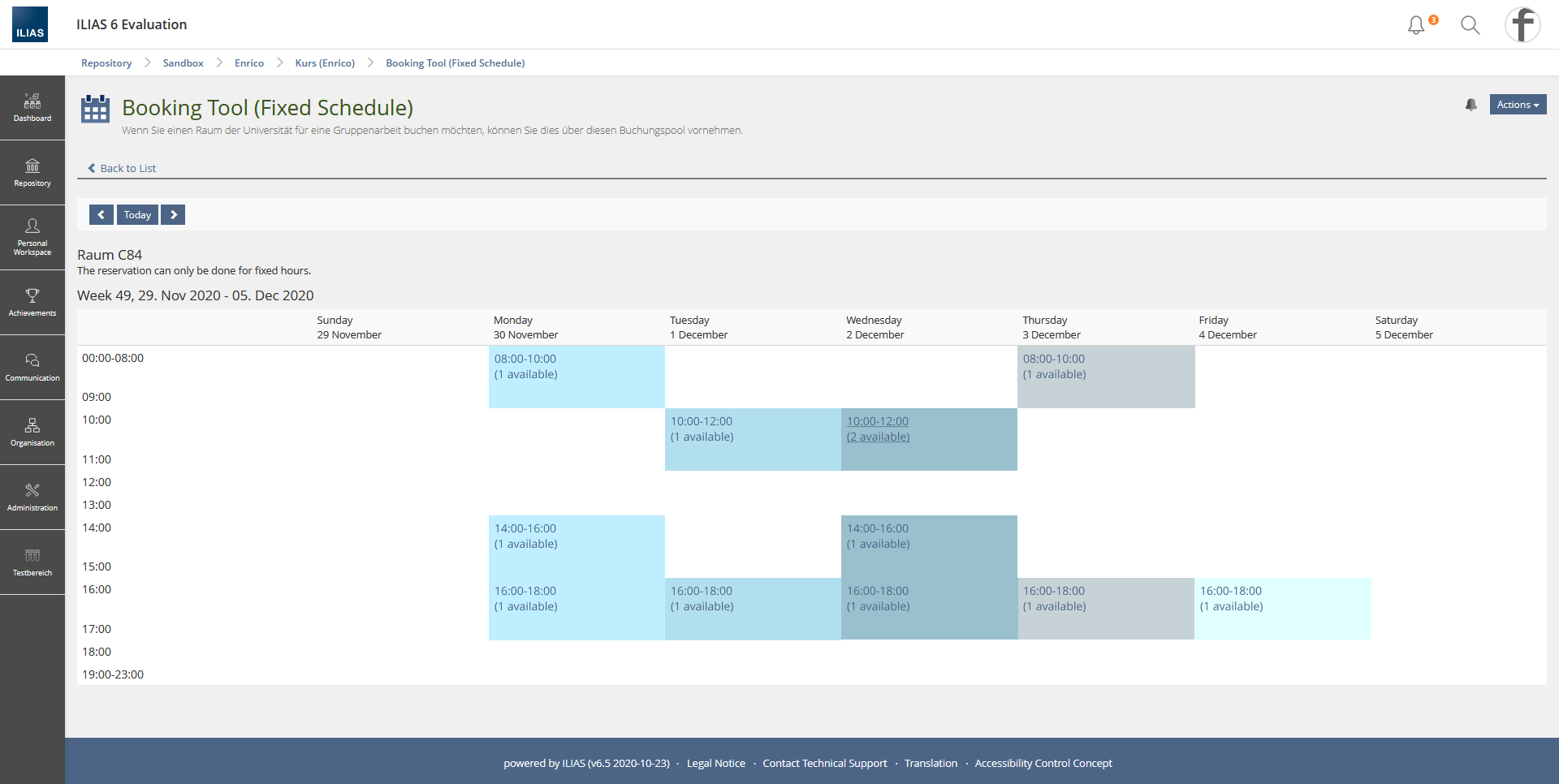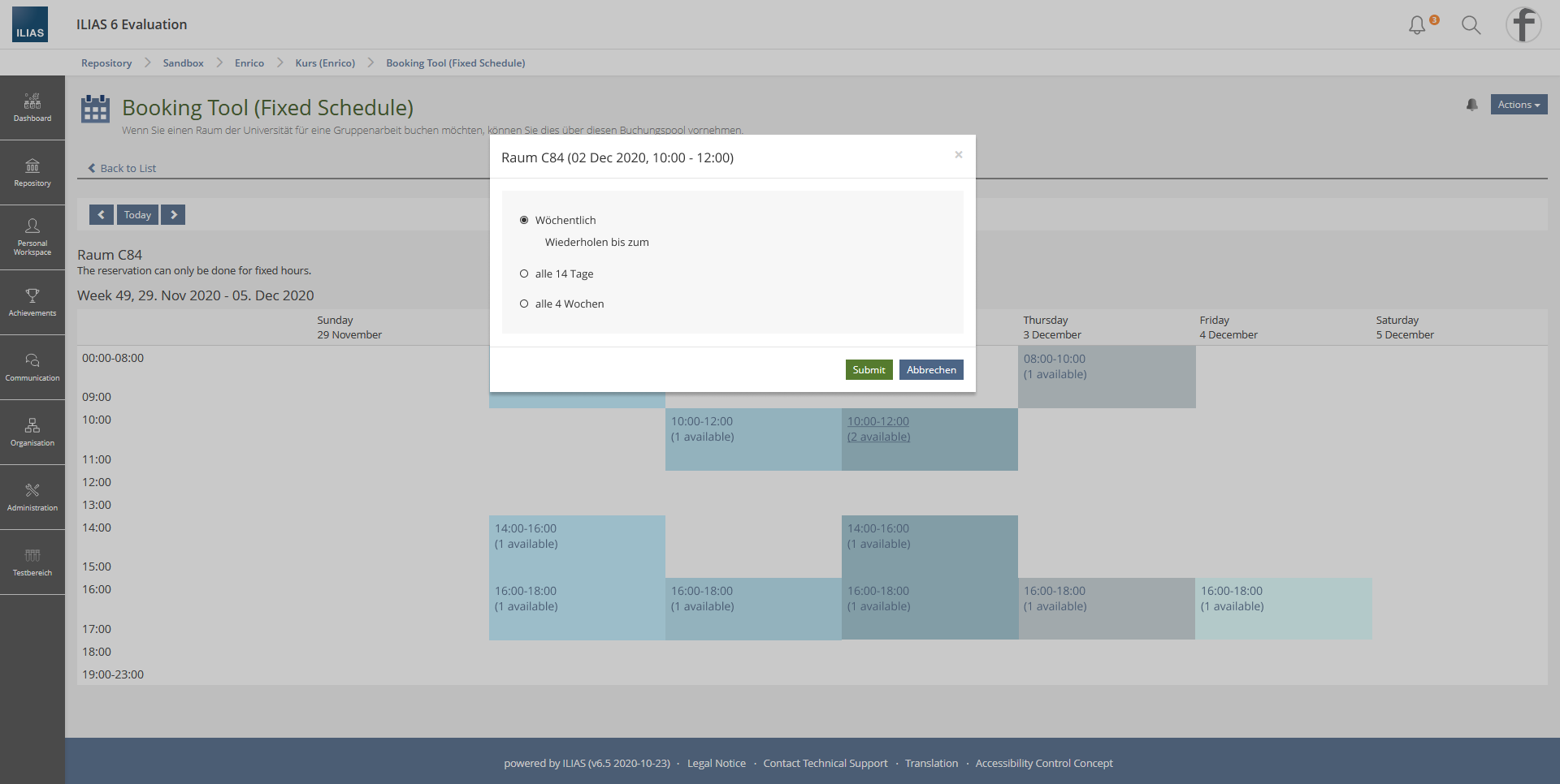- If users want to book several repetitions, they can enter the interval of the repetition in the second step of the booking. By clicking on the button "Check and book dates" ILIAS checks if all repeat dates are available.