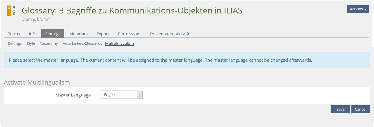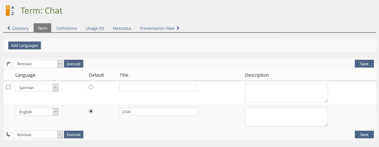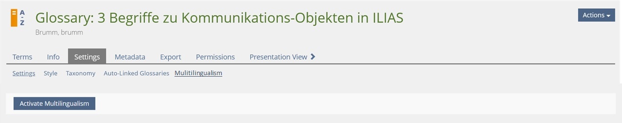 The handling of multilinguality in glossaries is very different from learning modules. In glossaries an additional term has to be added.