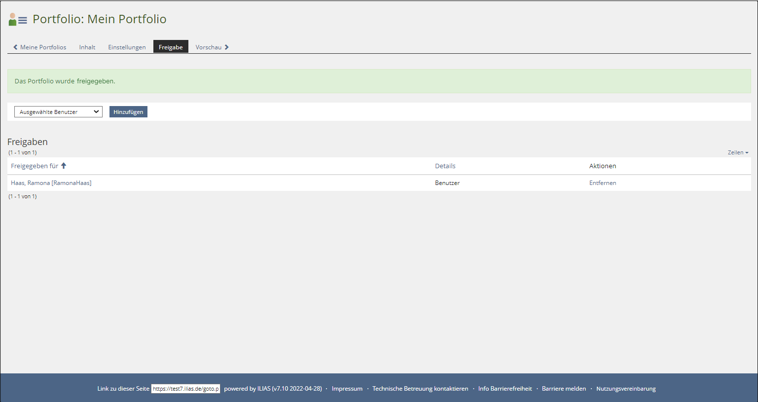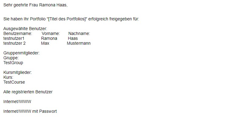 Sie haben Ihr Portfolio "[Titel des Portfolios]" erfolgreich freigegeben für: