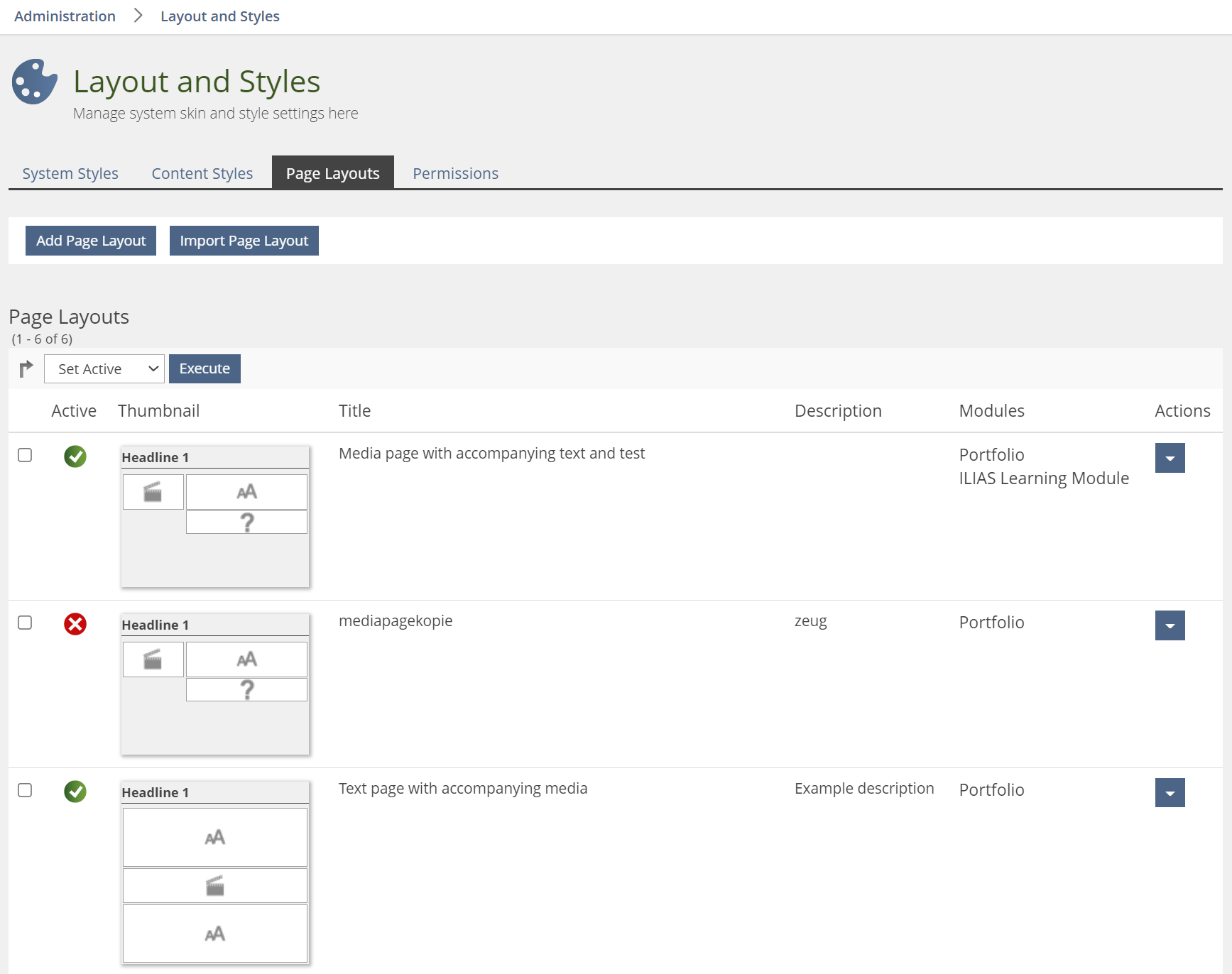 Page Editor » Page Template Administration