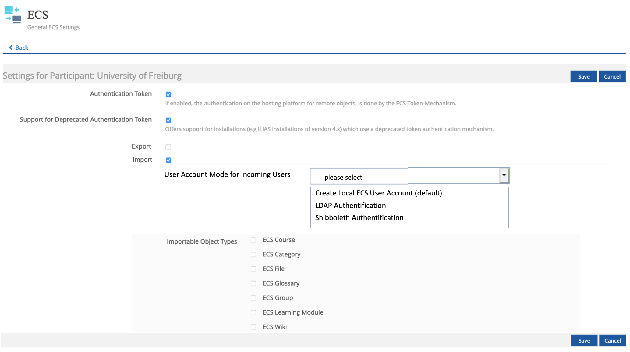 - users can login on both interconnected platforms using LDAP or Shibboleth, meaning that respective IdP backends / LDAP servers are configured in both ILIAS installations