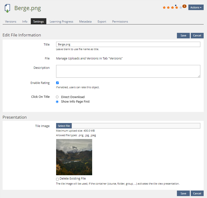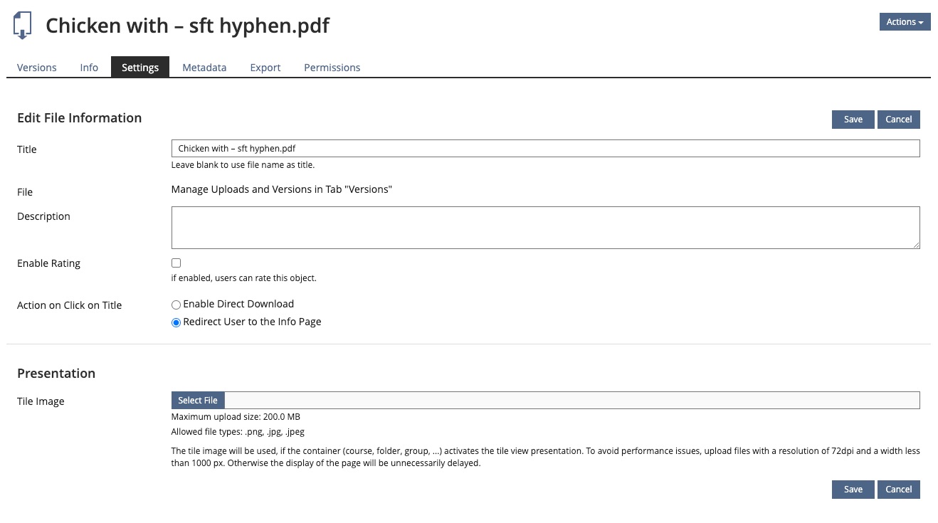 After clicking a file object in ILIAS, the download automatically starts. In some cases it's useful to get some more information first, instead of downloading directly.