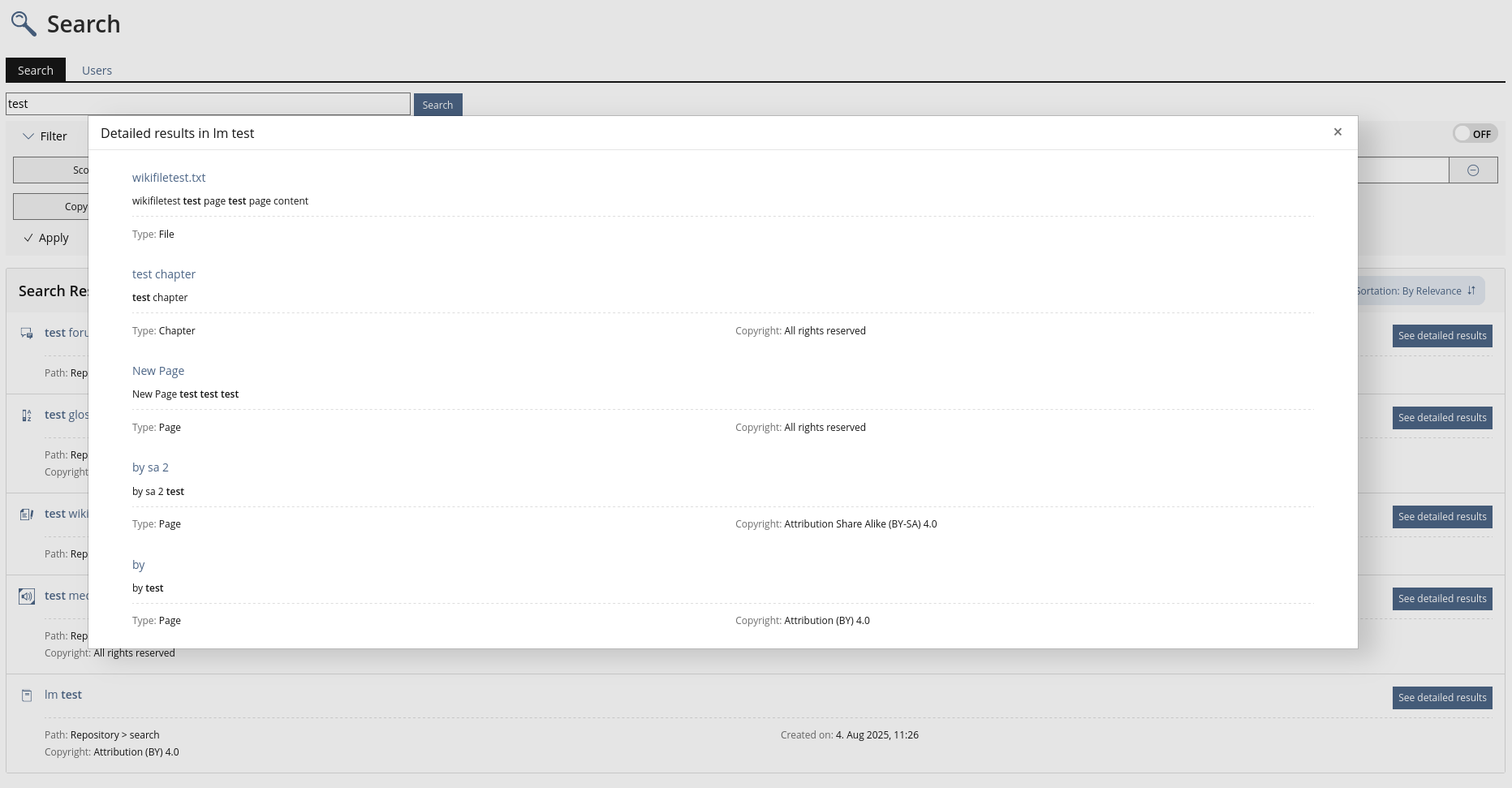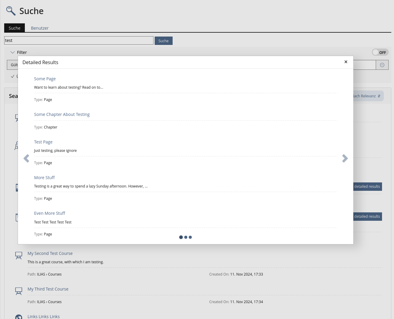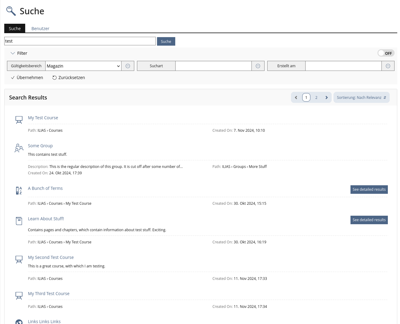 Kunkel, Matthias [mkunkel], 08 APR 2025: The feature request is suggested for the JF agenda but it needs an update before deciding upon it. The presentation of search results already looks different in ILIAS 10 than shown above. And there is information missing in chap. 4.3 and 4.4.