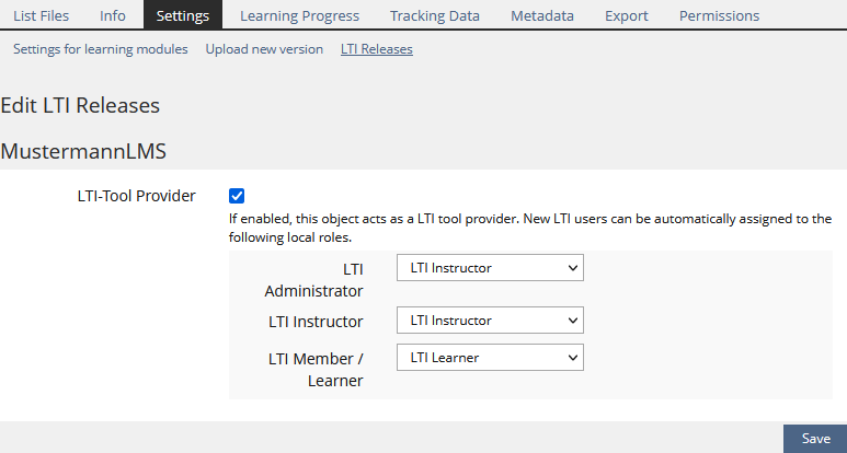 JourFixe, ILIAS [jourfixe], 10 JAN 2022 : We highly appreciate this suggestion and accept the feature for ILIAS 8. Please improve the screen for the matching of LTI roles to ILIAS roles (above chap. 2) to make clear which are the labels from LTI and which are the roles of ILIAS (should be done for all supported components).