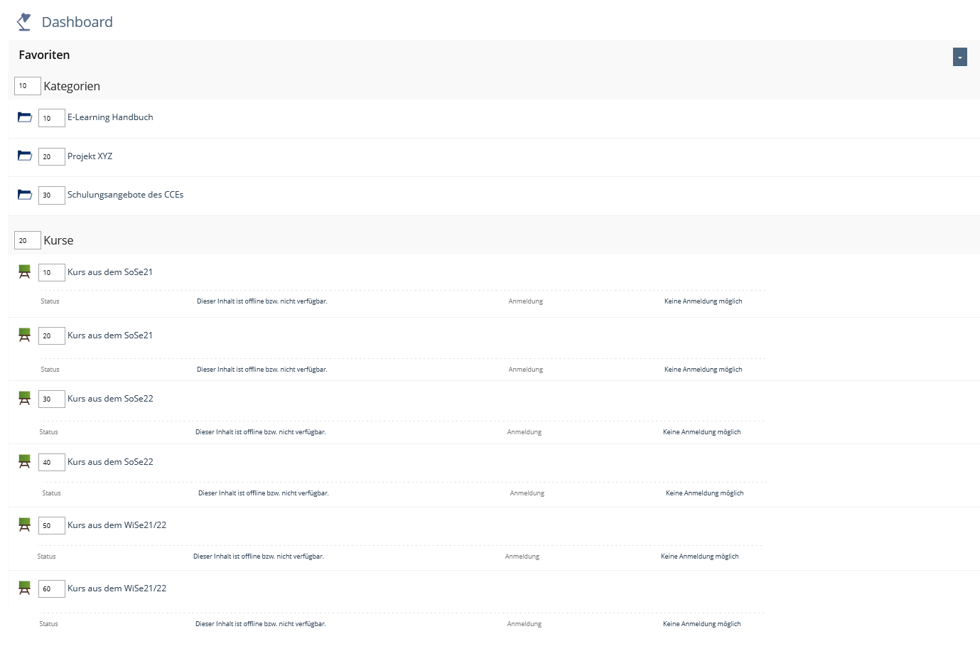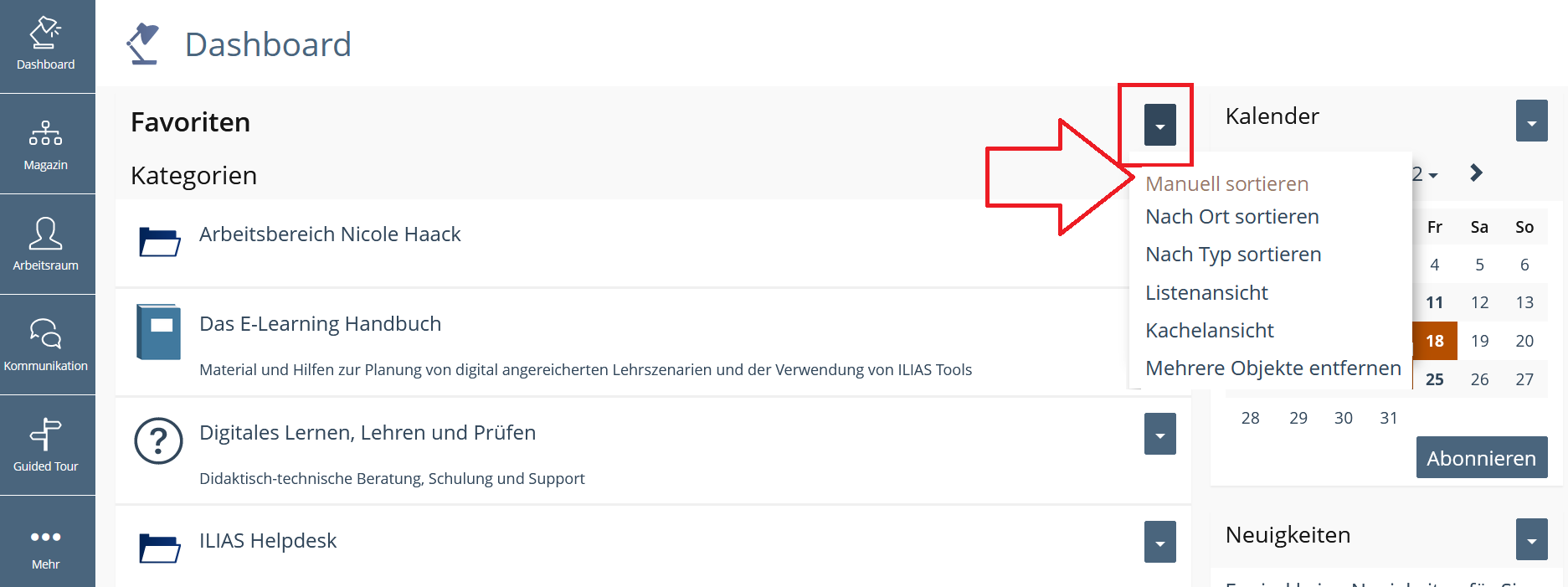 -> For better organisation within the favourites, they should be sortable. Sortable in the dashboard and not only in the slate (https://docu.ilias.de/goto_docu_wiki_wpage_6295_1357.html