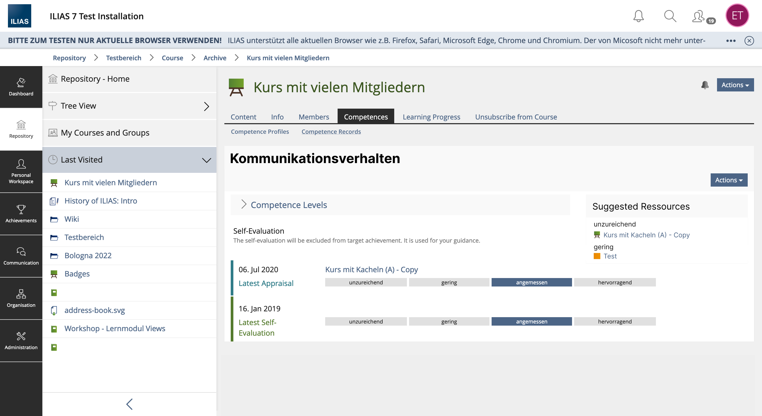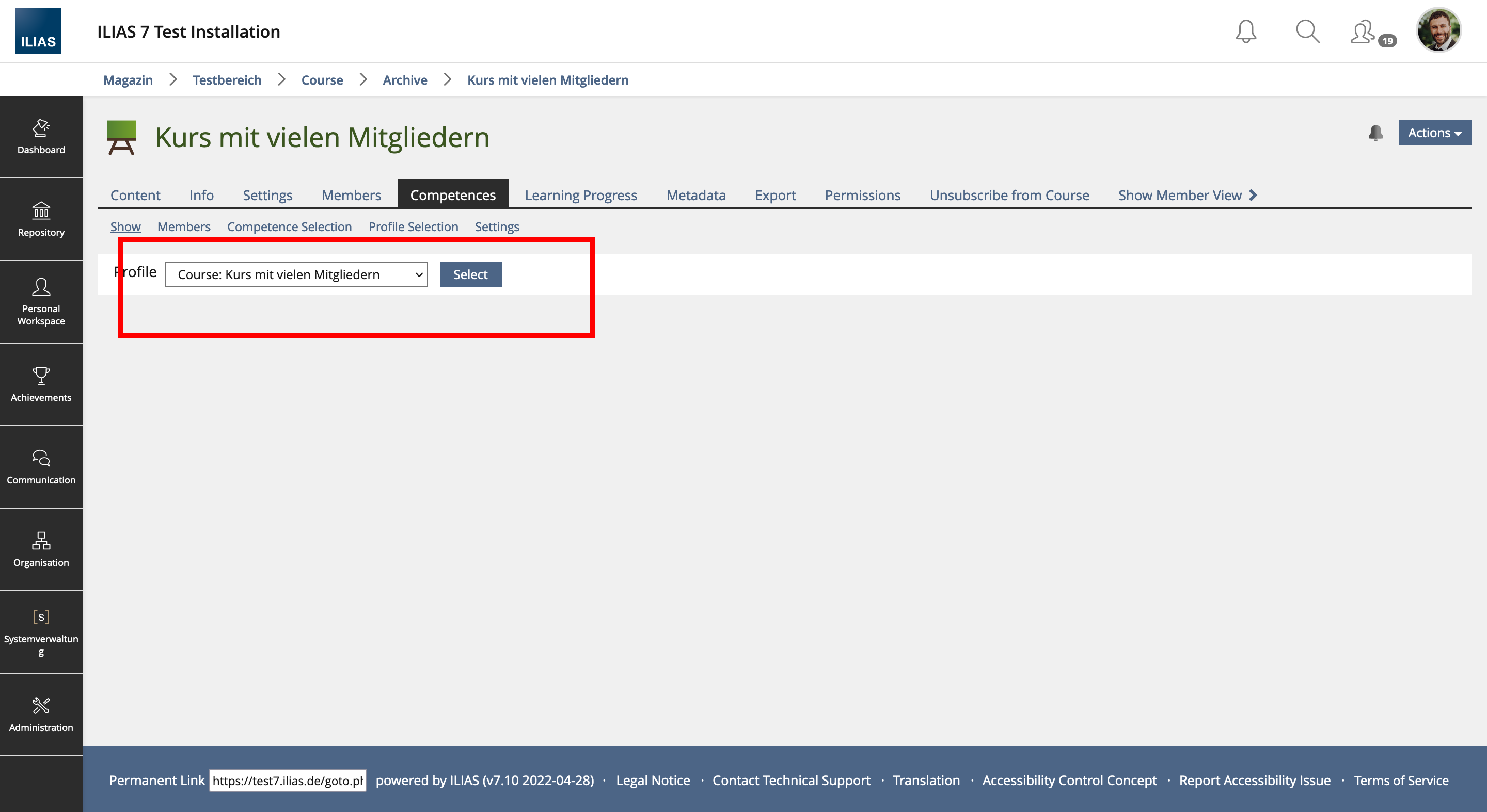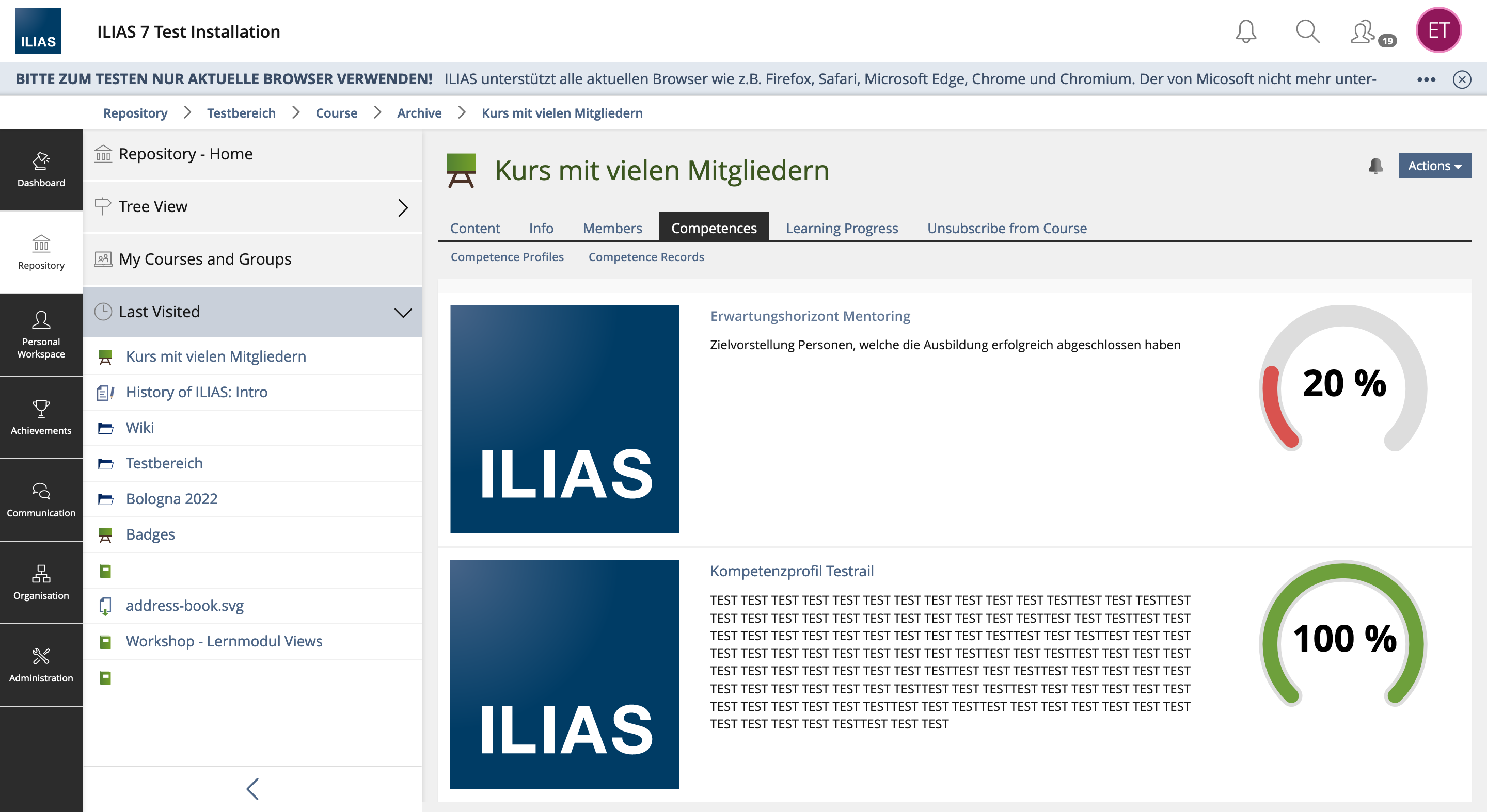 With ILIAS 8 the competence profiles in the overview under Achievement » Competences have been revised.