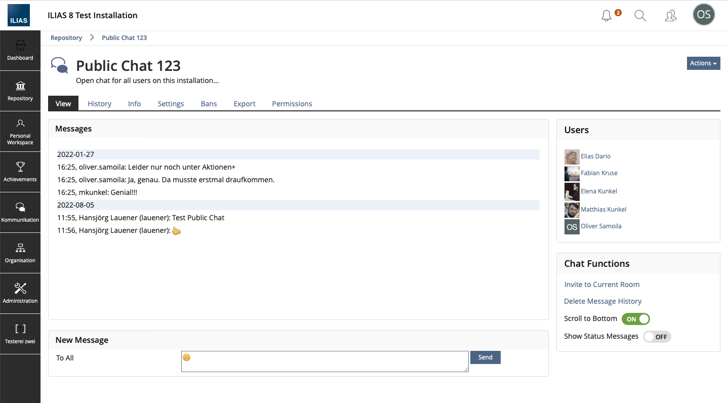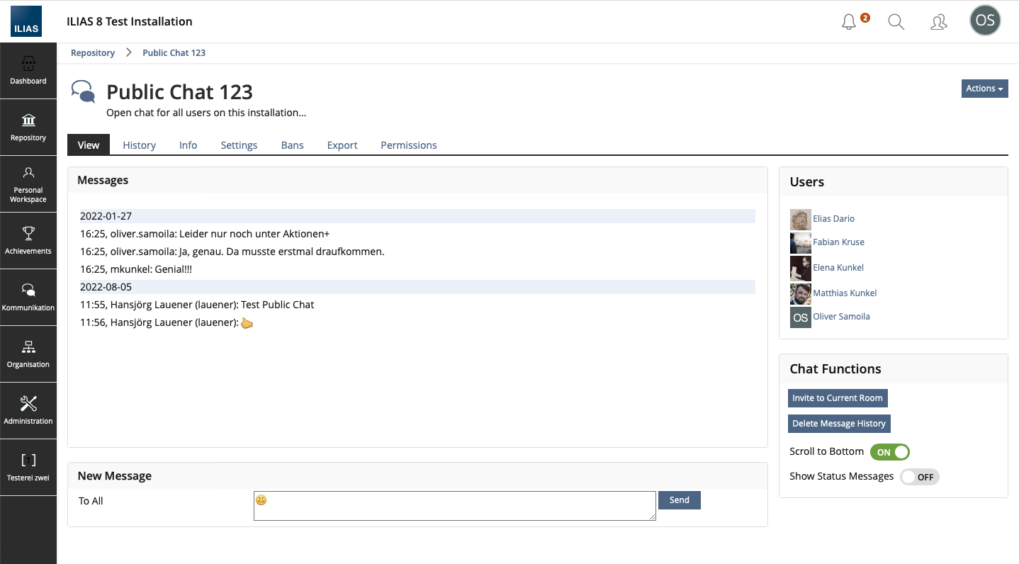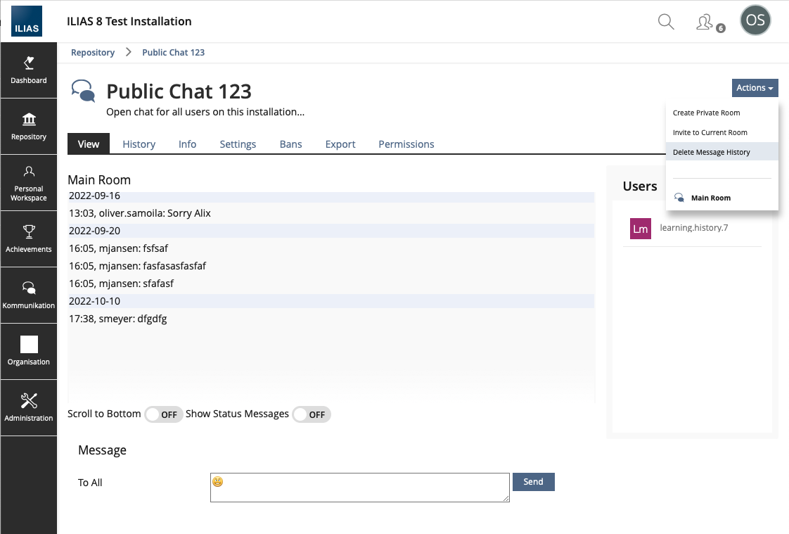 - Transfer [Invite to Current Room] and [Delete Message History] from the Object Actions Menu to the Chat Functions