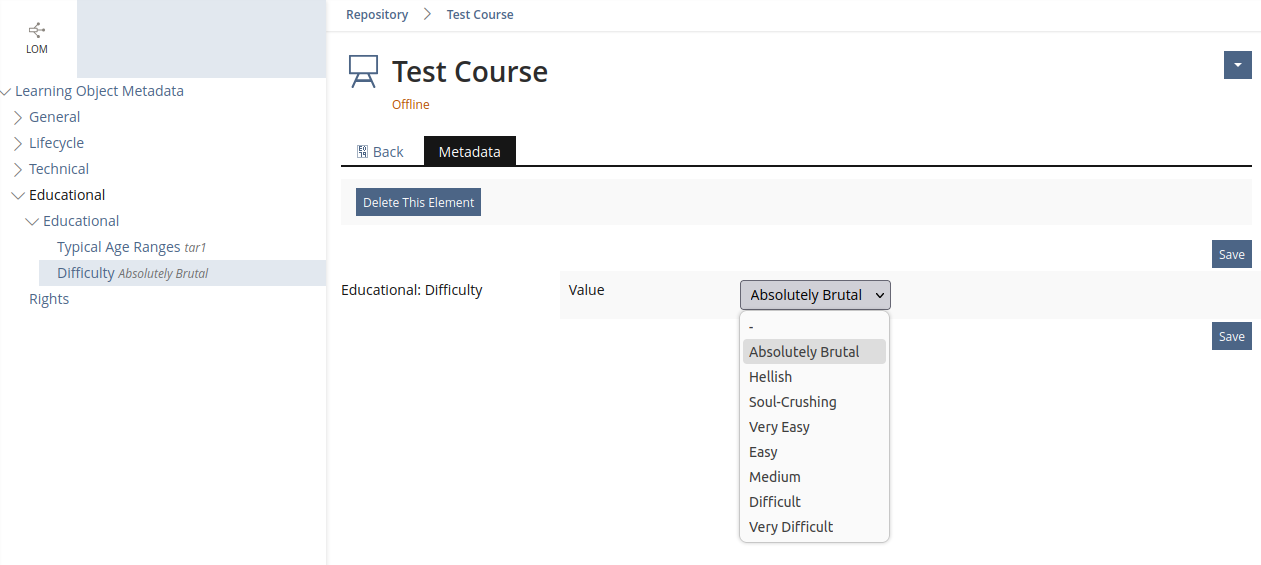 - Administration > Search and Find > Metadata > Copyright & OER > LOM Vocabularies