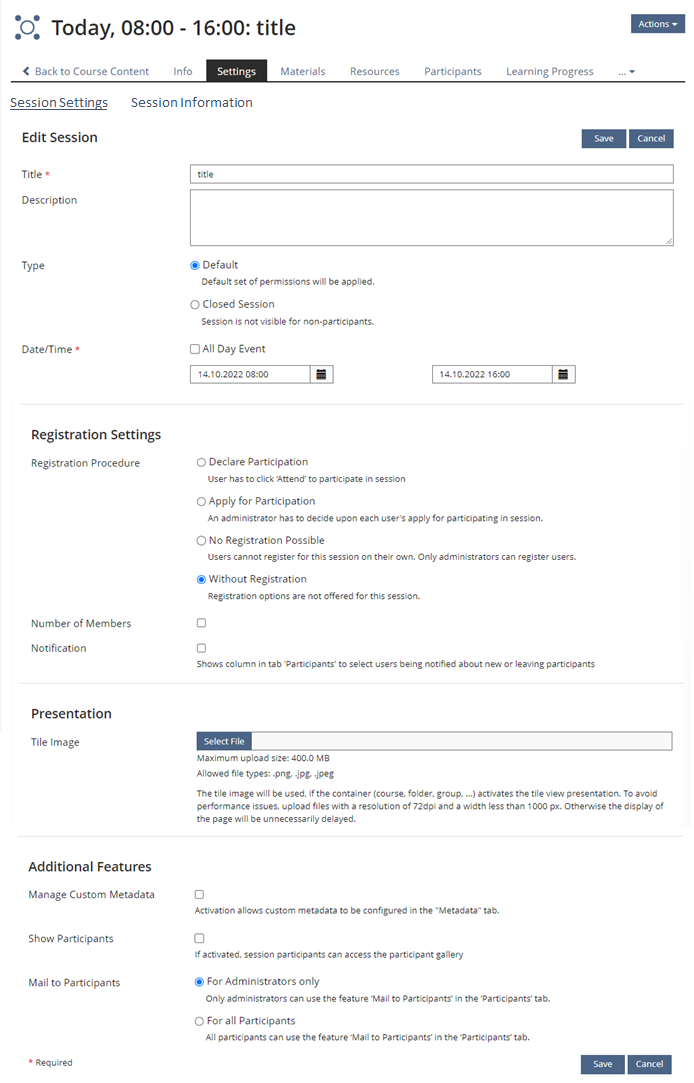 - Users are not taken to the Settings tab after creating the session as they are in all other objects.