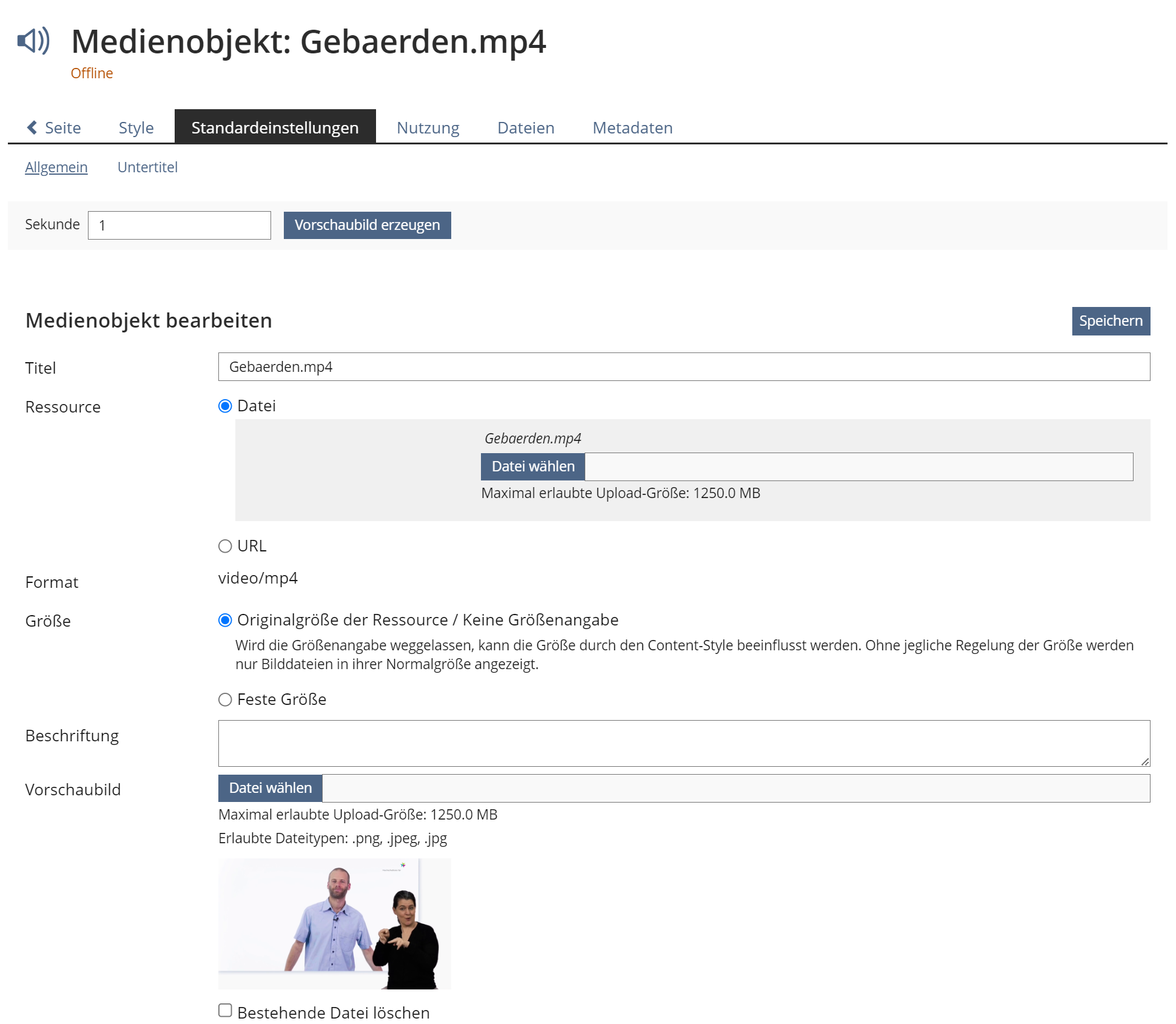 Similar to the edit page of videocasts, two new options will be presented in the default properties of local / uploaded videos inserted by the ILIAS page editor: